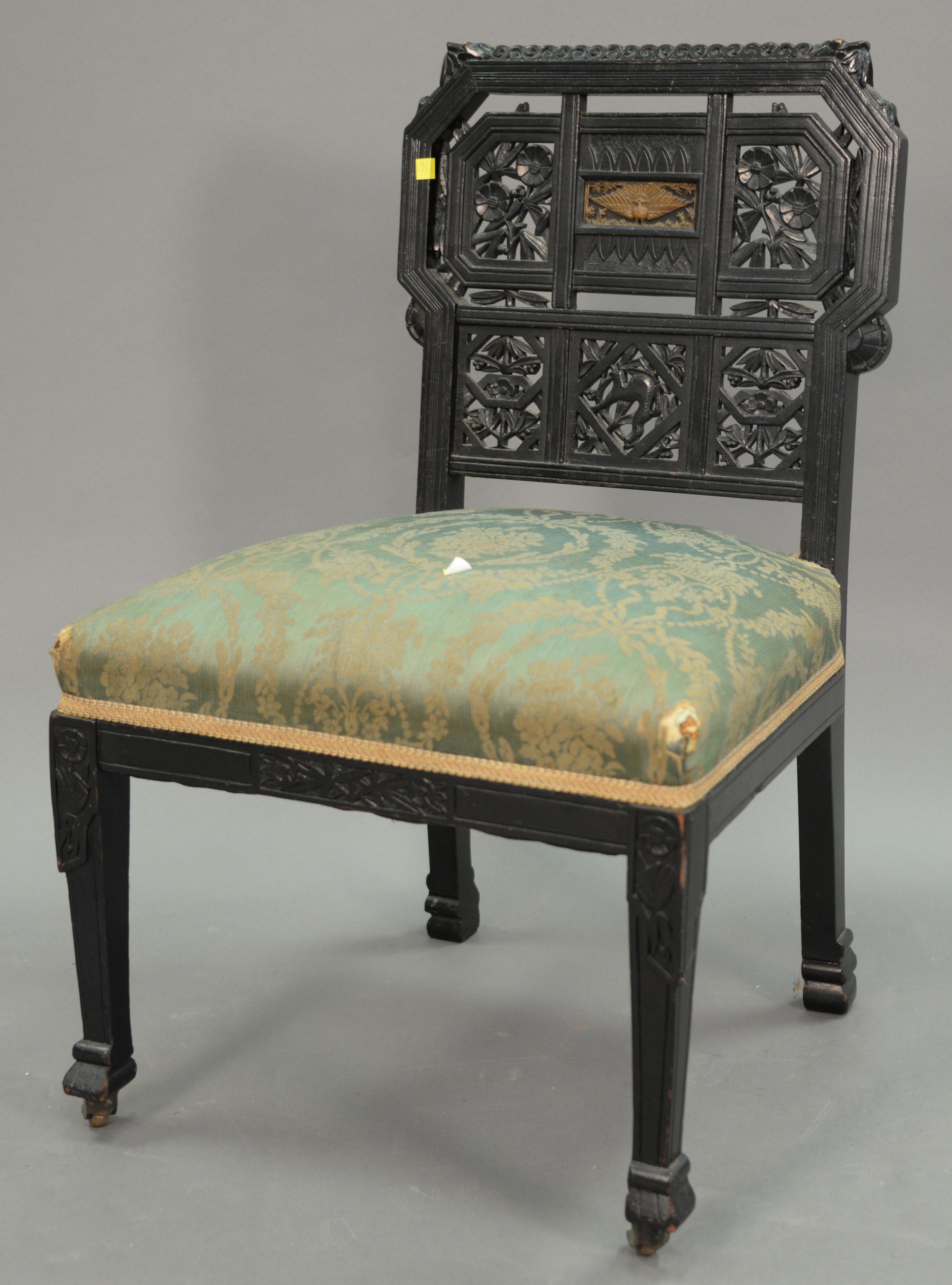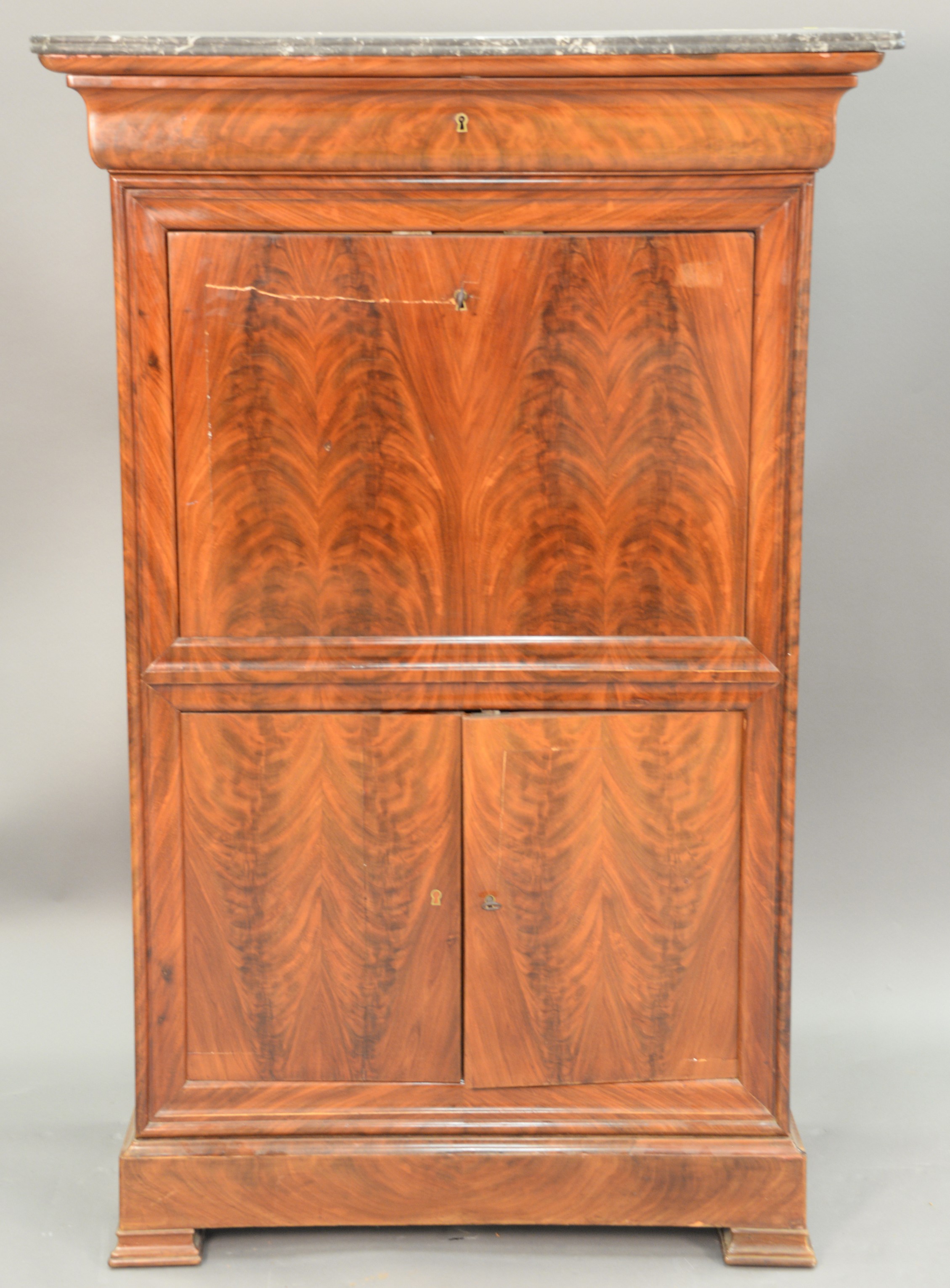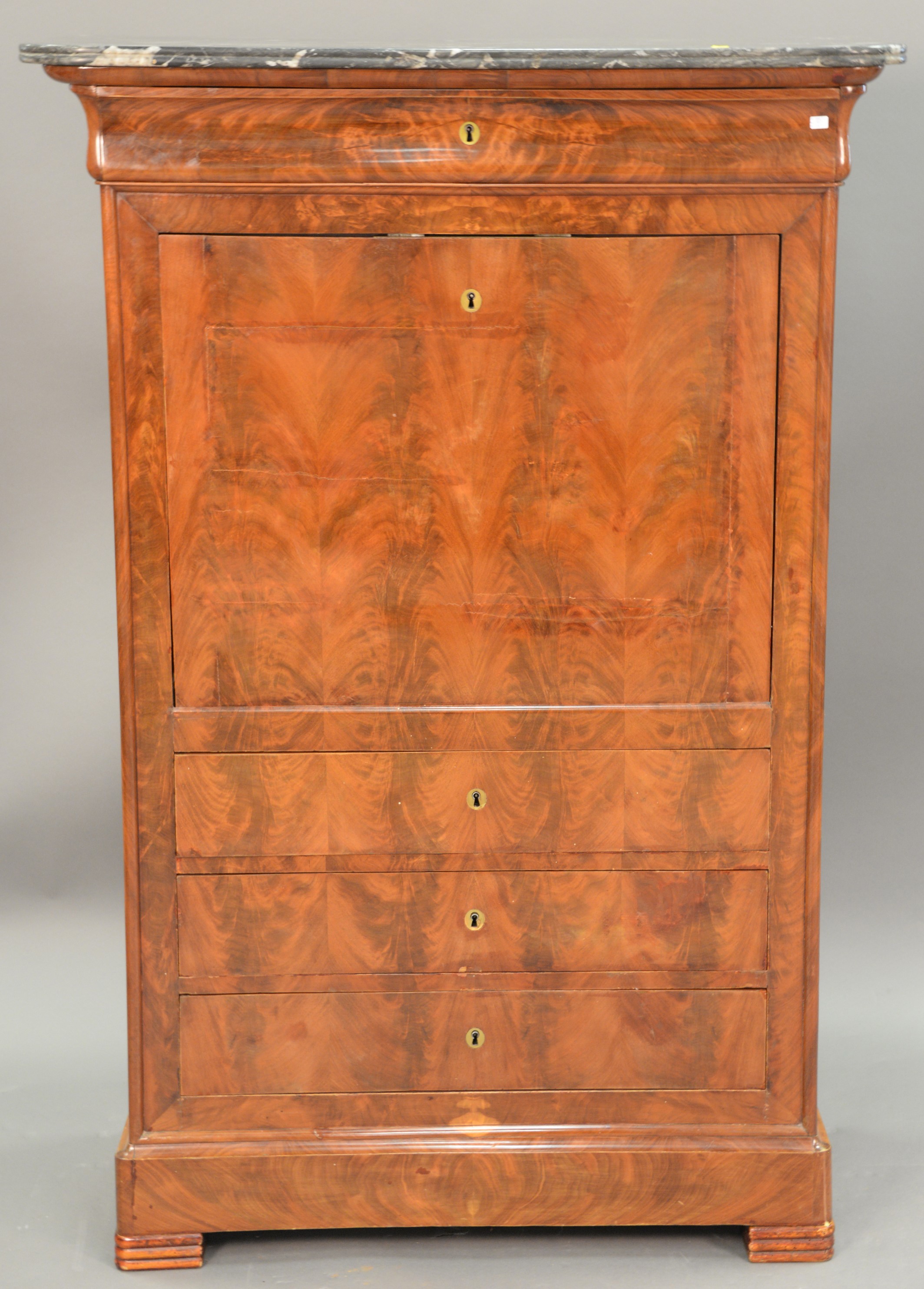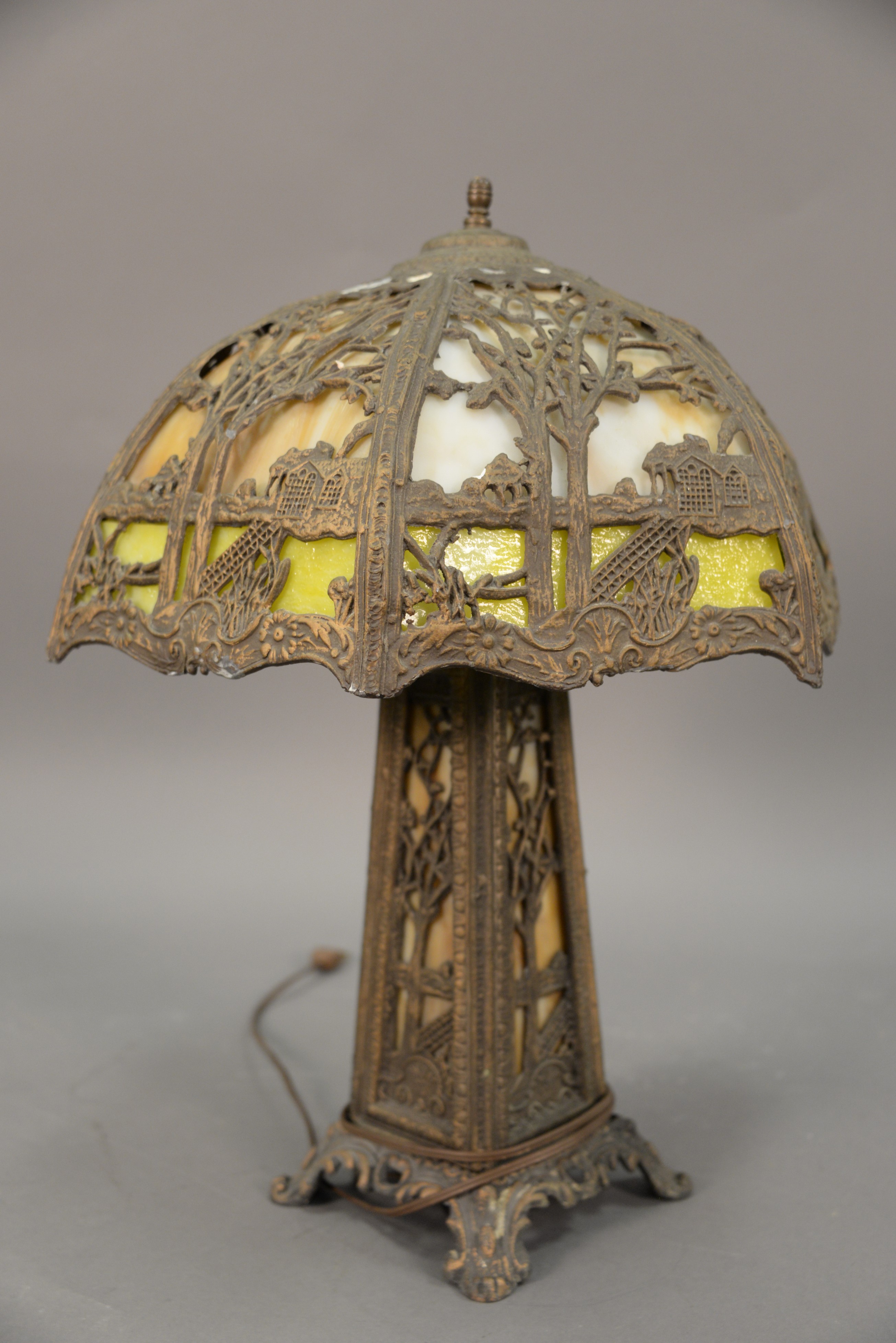 After Julien Causse 1869-1914 Art Nouveau bronze figural lamp, three light with iridescent shades, inscribed signature on raised marble base. ht. 25 in.