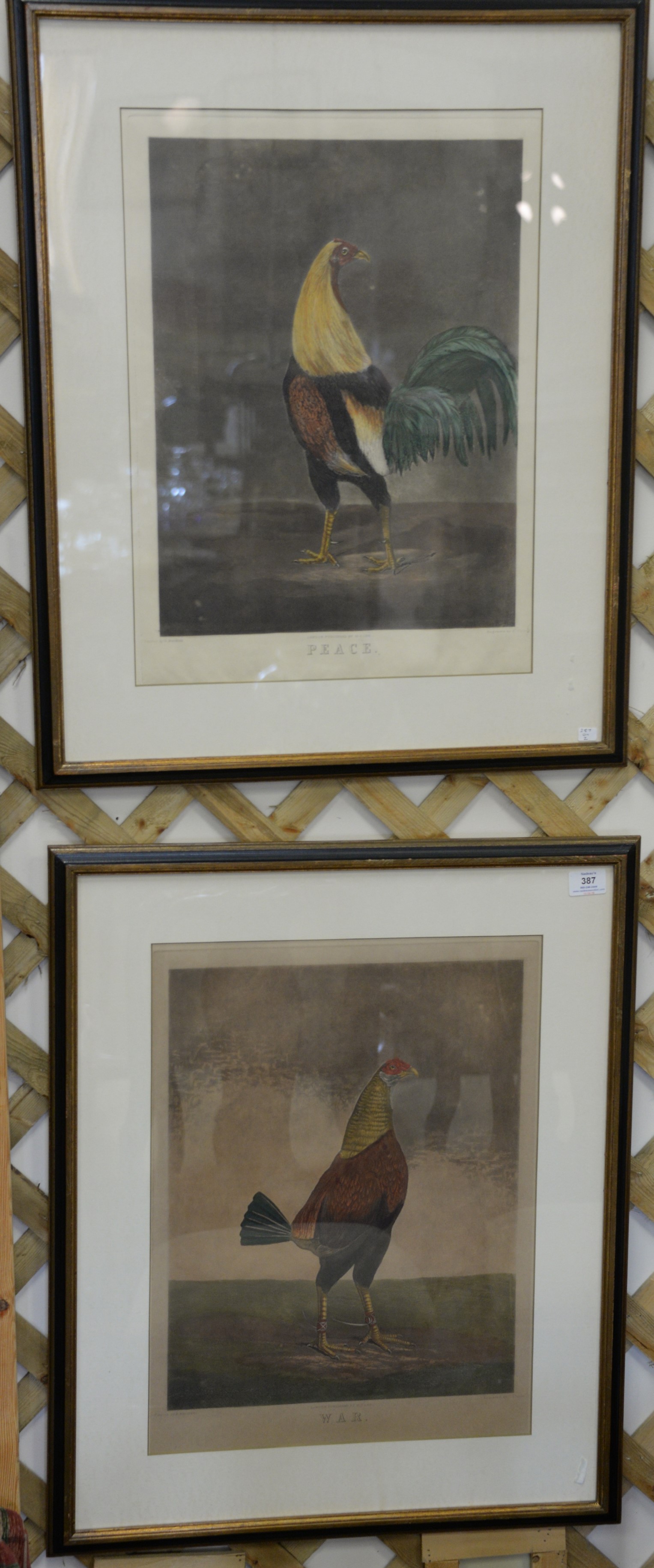 After Benjamin Marshal, pair of hand colored engravings Peace and War, engraved by C. Turner, Pictures for Business label on reverse. 21 x 15 1/2 Property from Credit Suisse’s Americana Collection