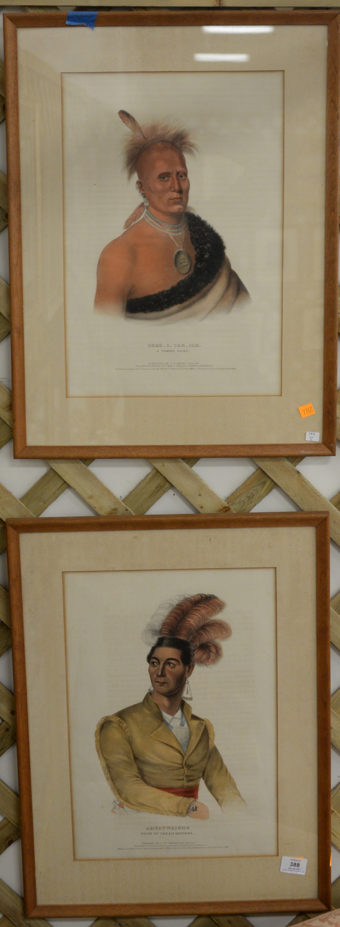 Two colored lithographs including John T. Bowen 1801-1856 Shar-I-Tar-Ish, a Pawnee Chief and F. W. Greenough Ahyou waighs, Chief of the Six Nations. 17 3/4 x 12 sight size