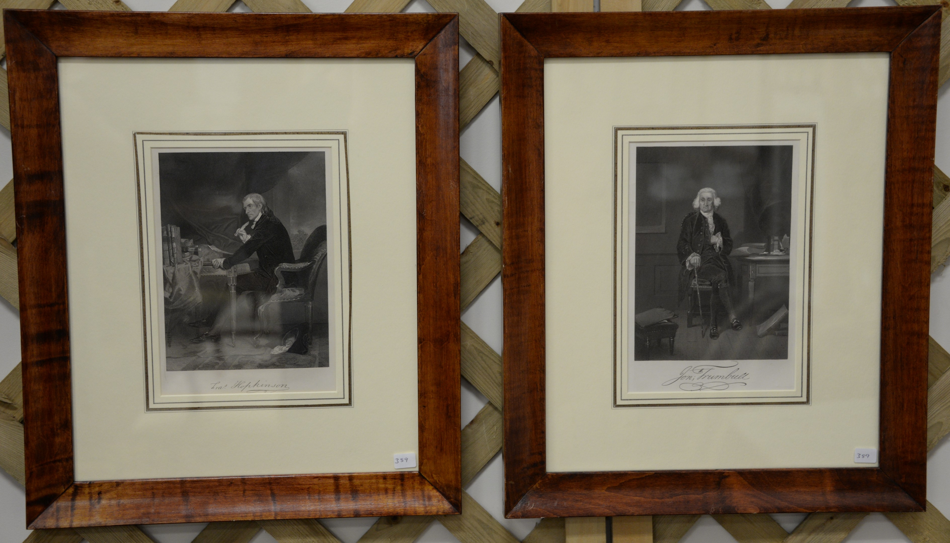 Set of eight framed prints and engravings by John Randolph, James Otis, Morris, Toni Trumbull, Hopkinson, Horatio Gates, William Moultrie, and Knox, all framed by Wesley Allen Framemakers, sight size 8 1/2 x 5 3/4. Property from Credit Suisse’s Americana Collection