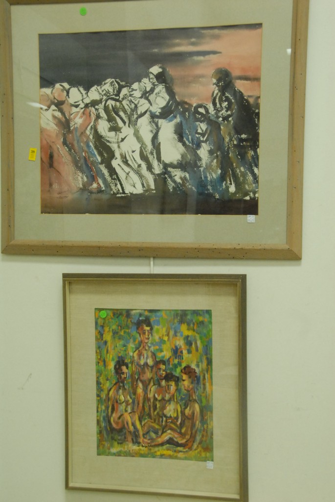 Two watercolor and gouache on paper Louis Wolchonok 1898-1973, five nude woman and running, both signed lower right Louis Wolchonok, sight size 16 x 12 and 19 x 23