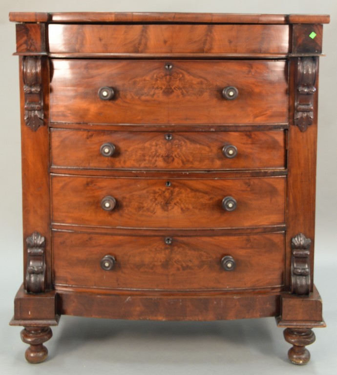 George IV mahogany chest with bowed front, circa 1840. ht. 57in., wd. 49 1/4in., dp. 22in.