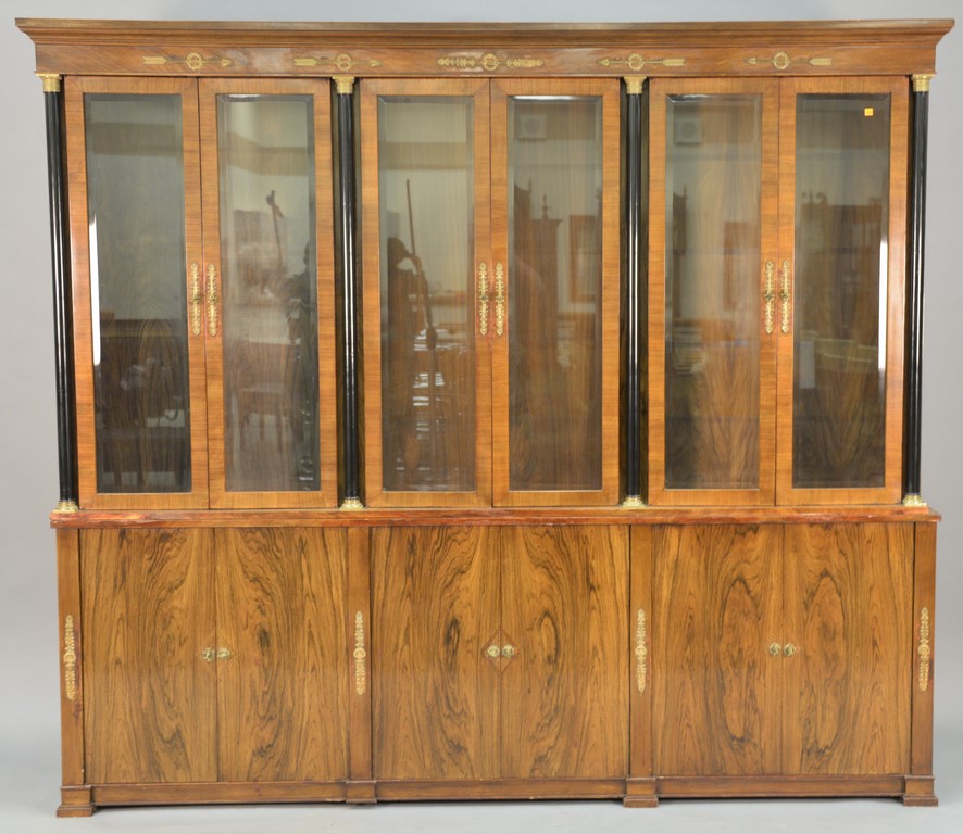 Biedermeier style two part breakfront, ht. 84in., wd. 95in., dp. 18in.