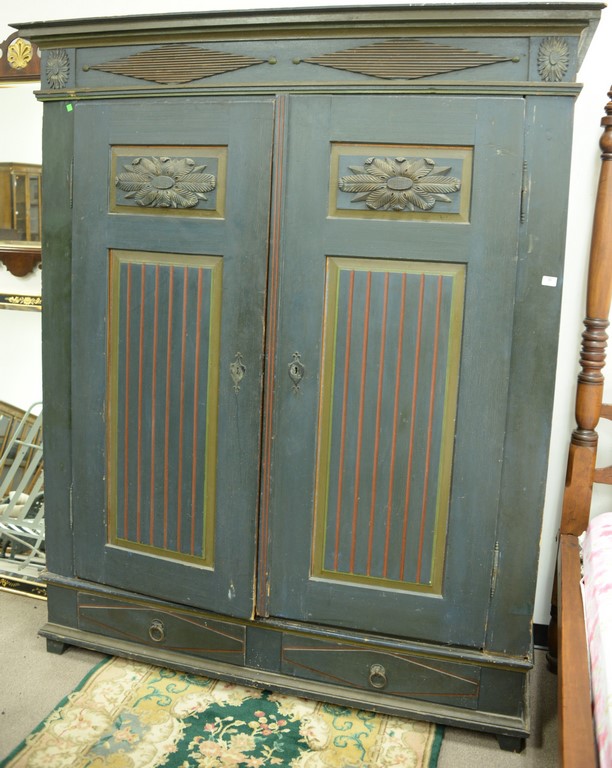 Two door paint decorated armoir no back ht. 87 1/2in., wd. 66in.