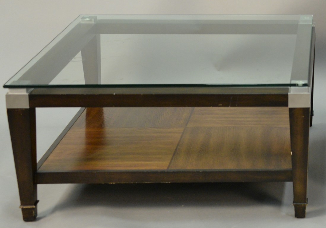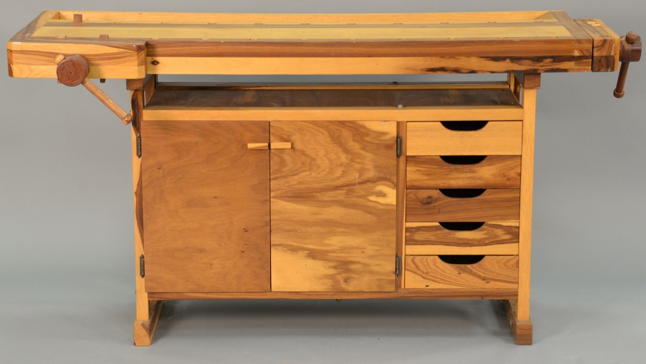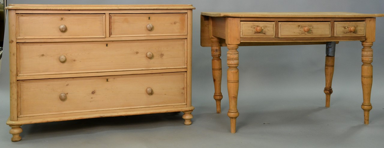 Two pine pieces including a pine two over two drawer chest and a pine three drawer table. chest: ht. 32in., wd. 45 1/2in. table: ht. 30in., top: 24 x 45