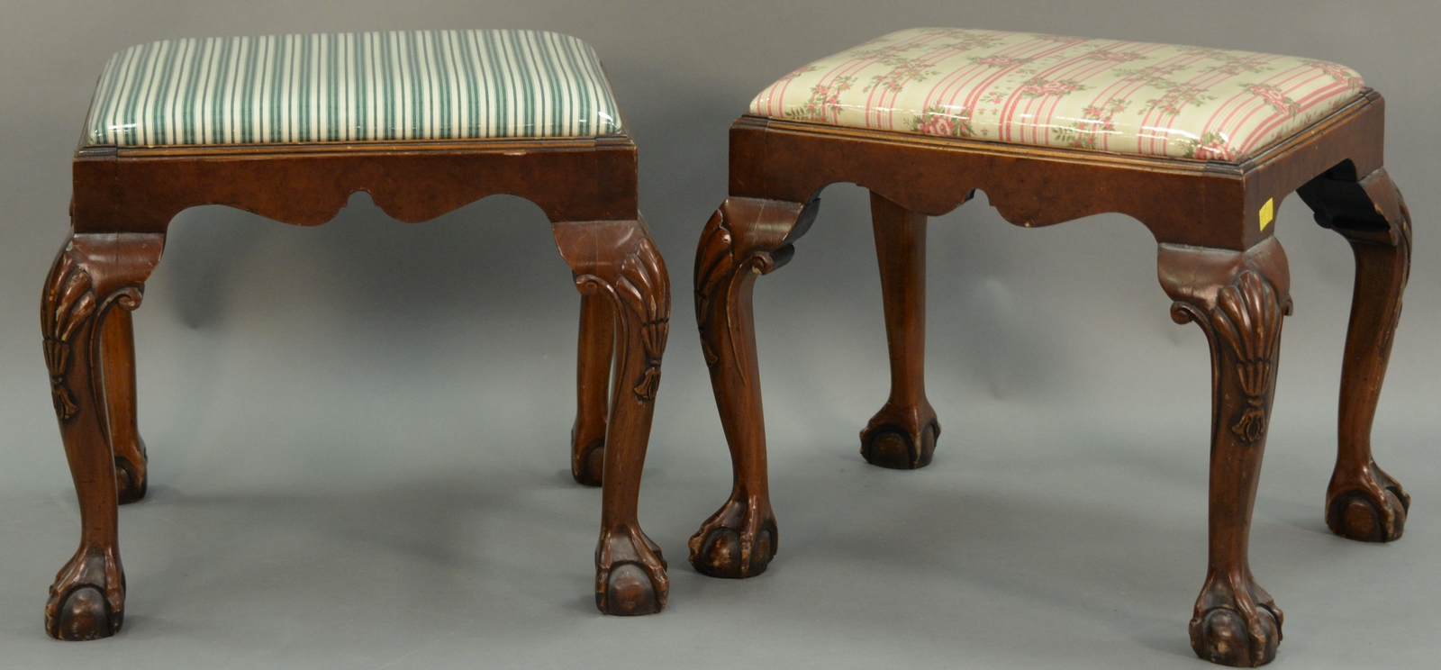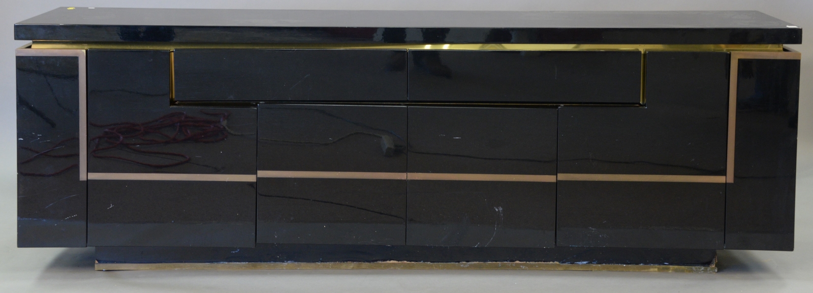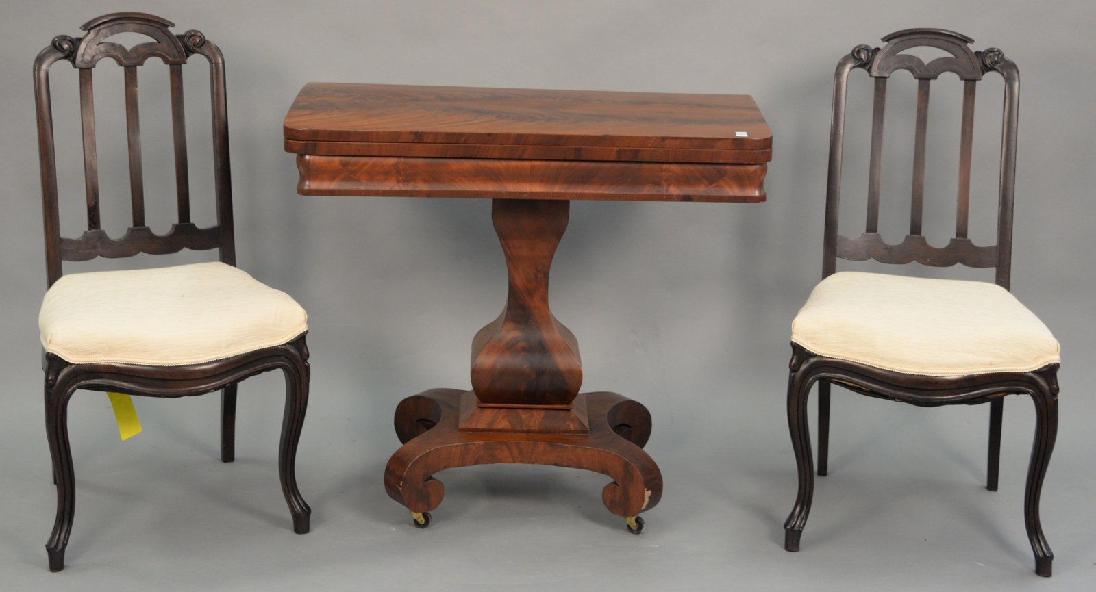 Henredon mahogany dining table with banded inlaid top set on double pedestal base with brass capped paw feet having two 24 leaves. ht. 28 1/2 in., closed 46 x 68, open 46 x 116