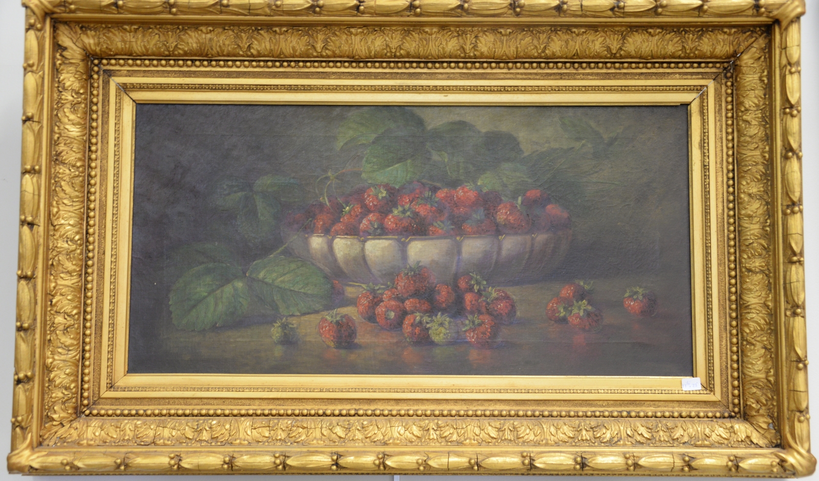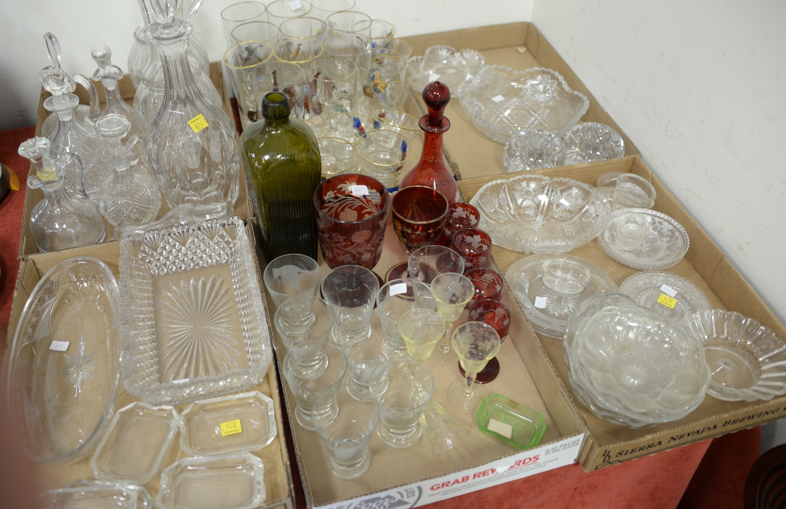 Painting and six box lots of crystal and glass to include three large decanters, cut glass dishes, sandwich glass, Bohemian glass, etc. and still life of flowers sight size 10 x 8.