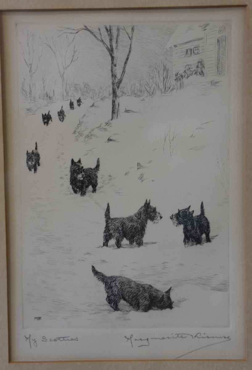 After Percival Leonard Rosseau 1859-1937 colored lithograph published by Arthur Ackermann & Son, two setters in a field with dog head remarque, signed lower right in pencil Percival Rosseau. images size 13 3/4 x 22
