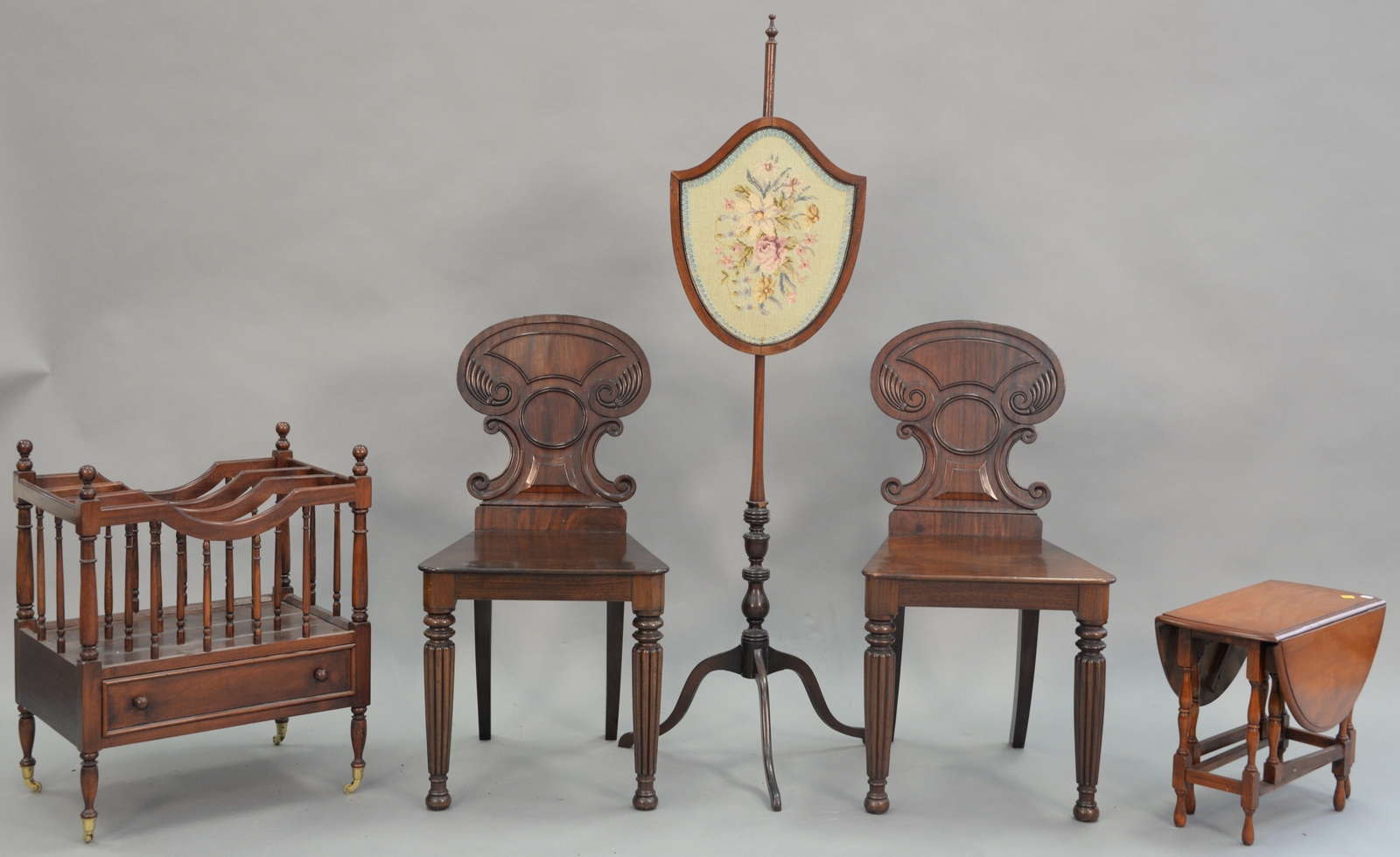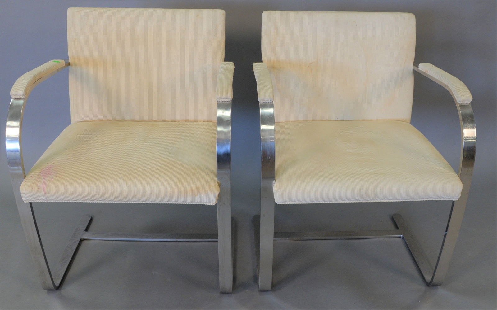 Contemporary dining table having rectangular top and one 18 leaf set on black legs with six side chairs with upholstered seat and inset upholstered backs, ht. 29in., top closed 42 x 62, top open: 42 x 80