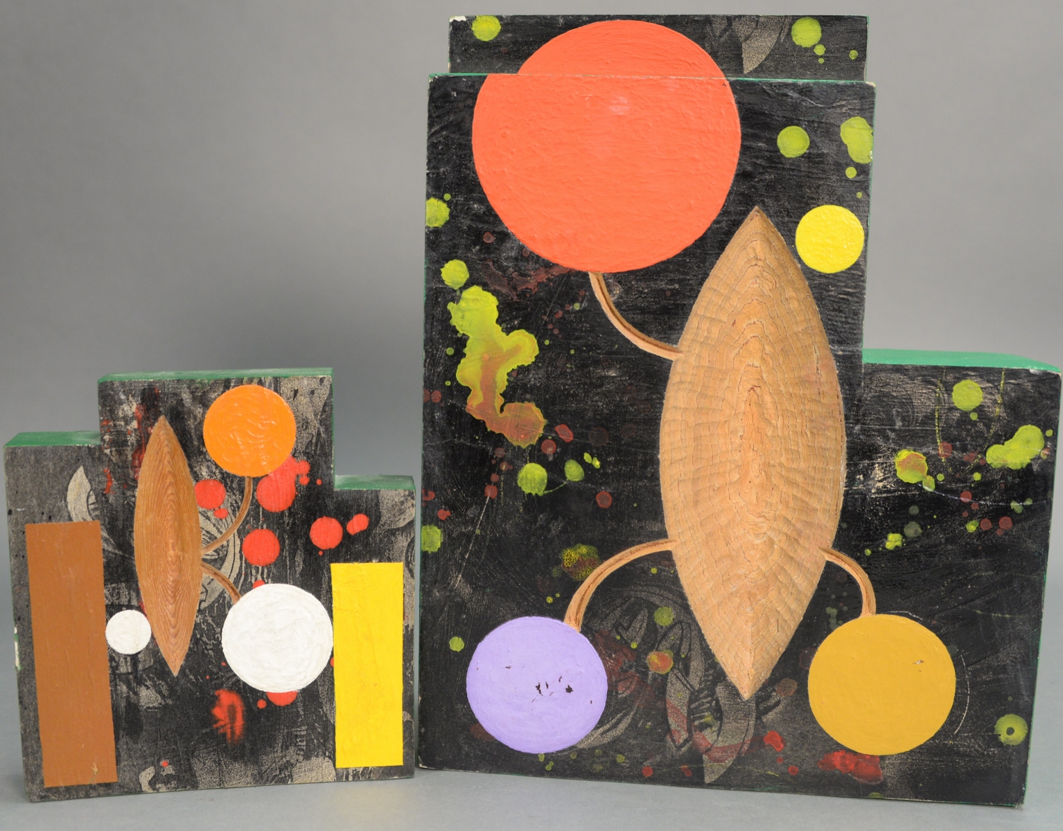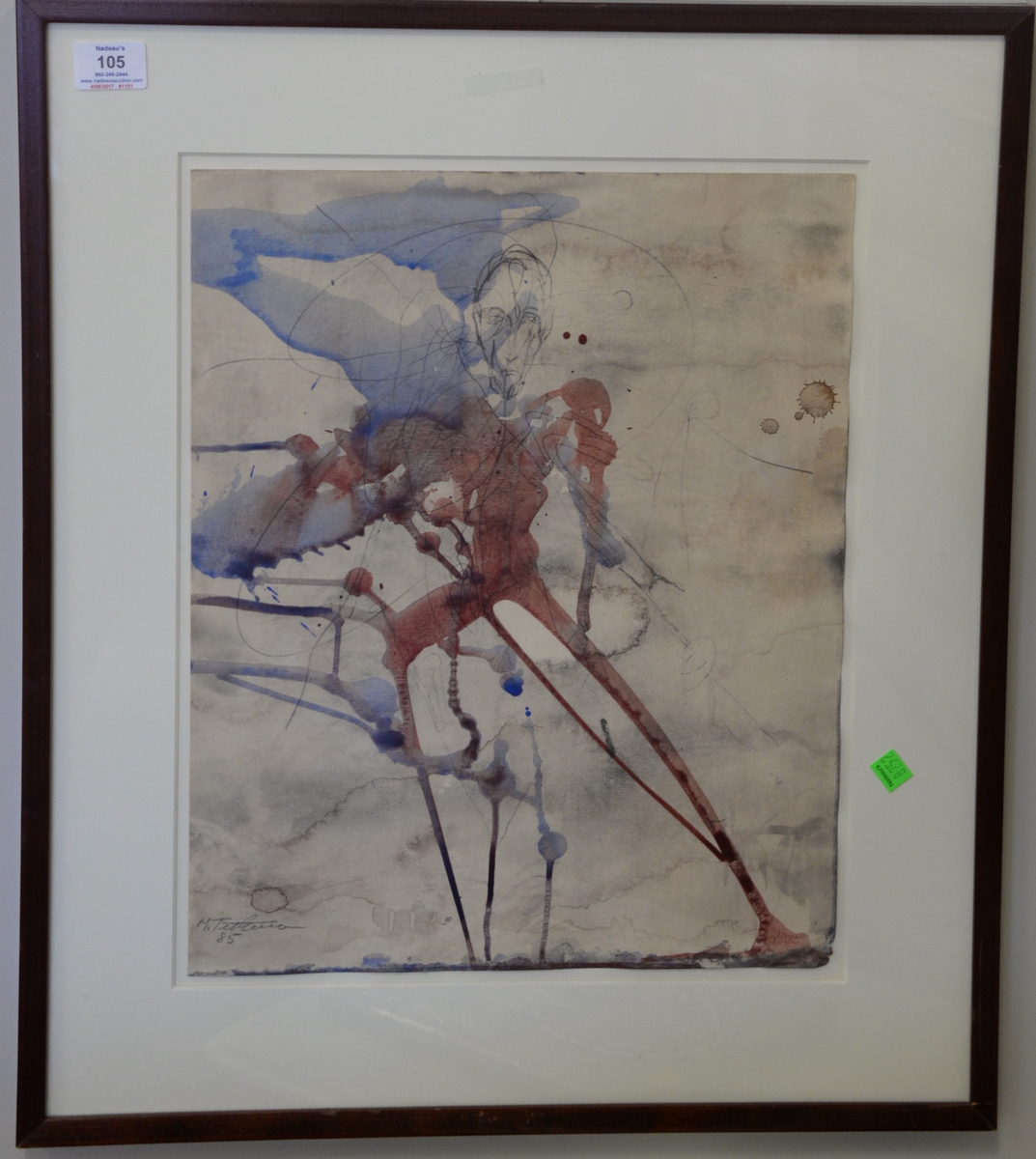 Two watercolors by Richard Welling 1926-2009 including Composition in Yellow and Red Prospect Street Demolition and The Great Steel Cage Hartford, CT, both signed Welling. sight size 23 x 17 1/2
