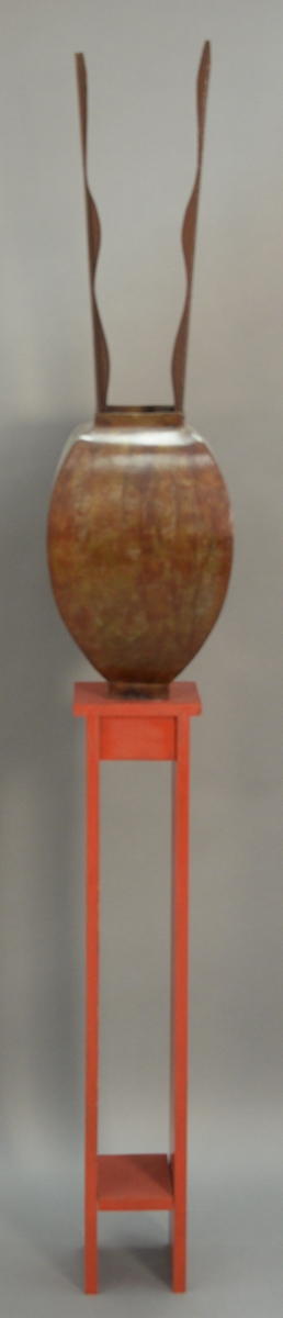 Three piece group to include a large plaster bust ht. 31in., white metal soldier ht. 15in., and an oil on board of an interior with old man signed Kaufman 12 x 9.