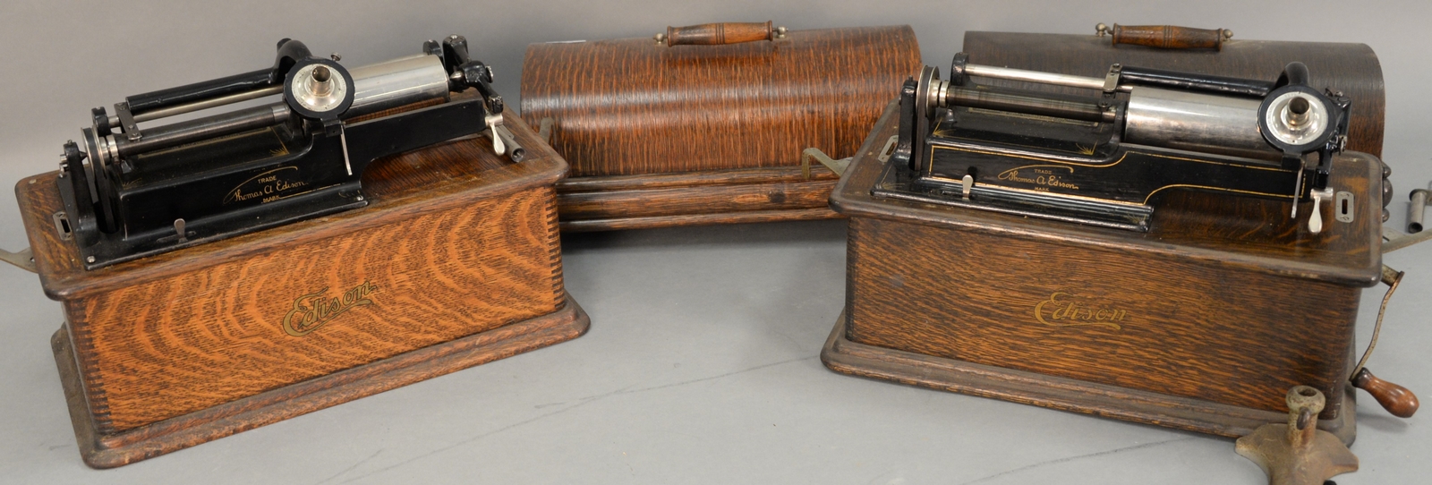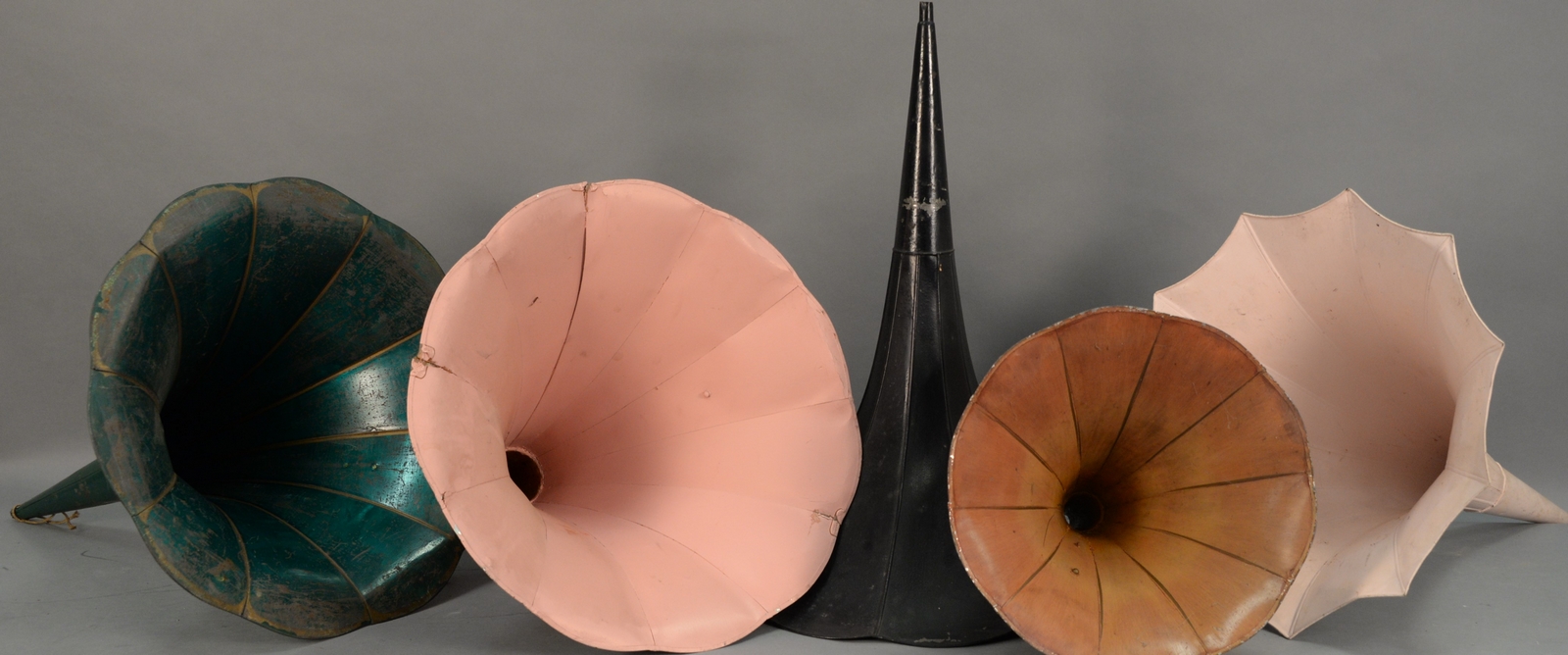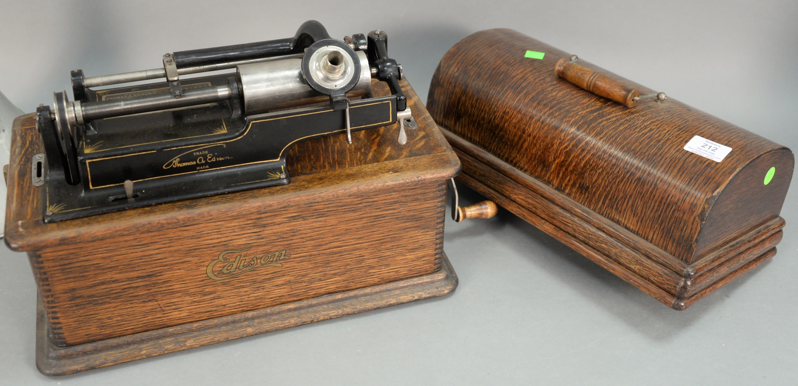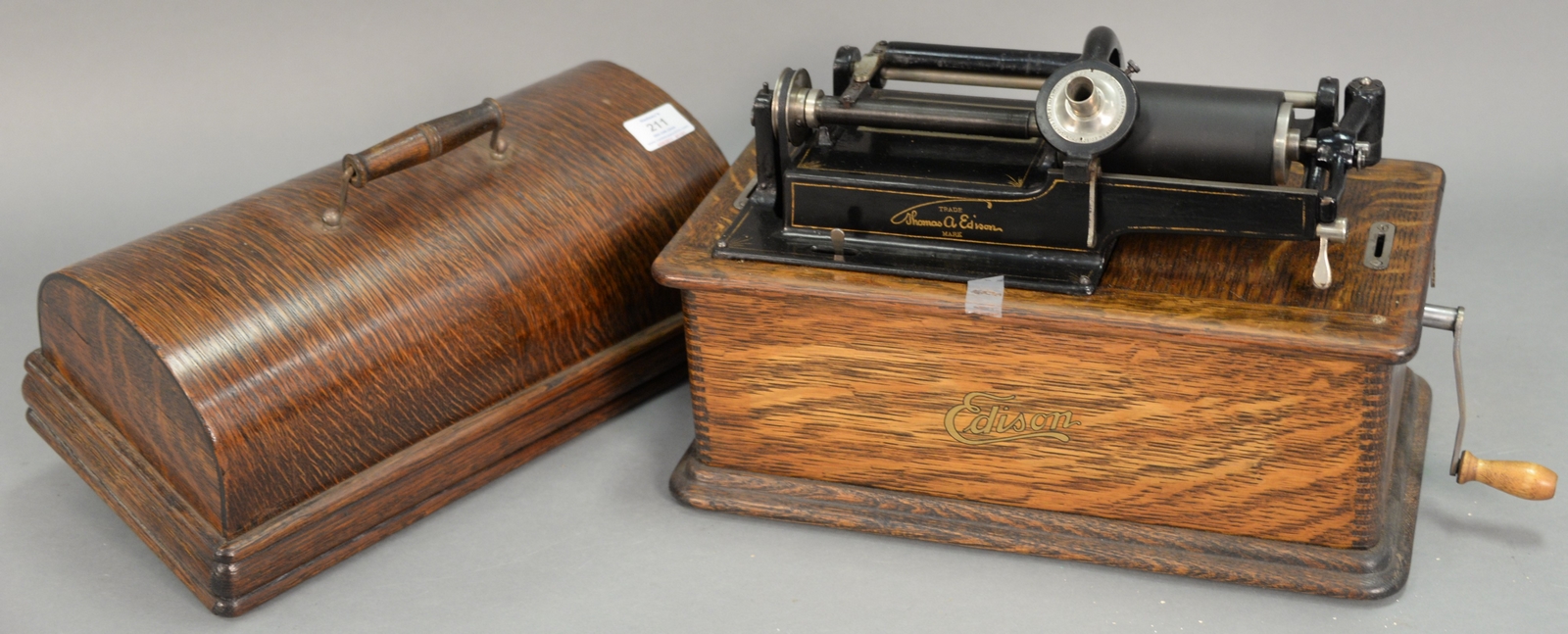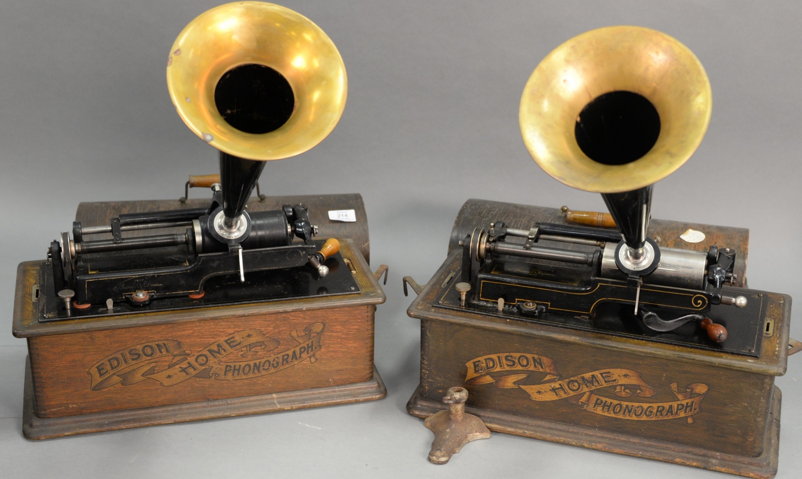 Two phonographs The Graphophone American Type B and a disc phonograph, one with 10inch horn. ht. 6 1/4in., wd. 11 3/4in., dp. 7 1/4in. & ht. 10 3/4in., wd. 14 1/2in., dp. 13in.