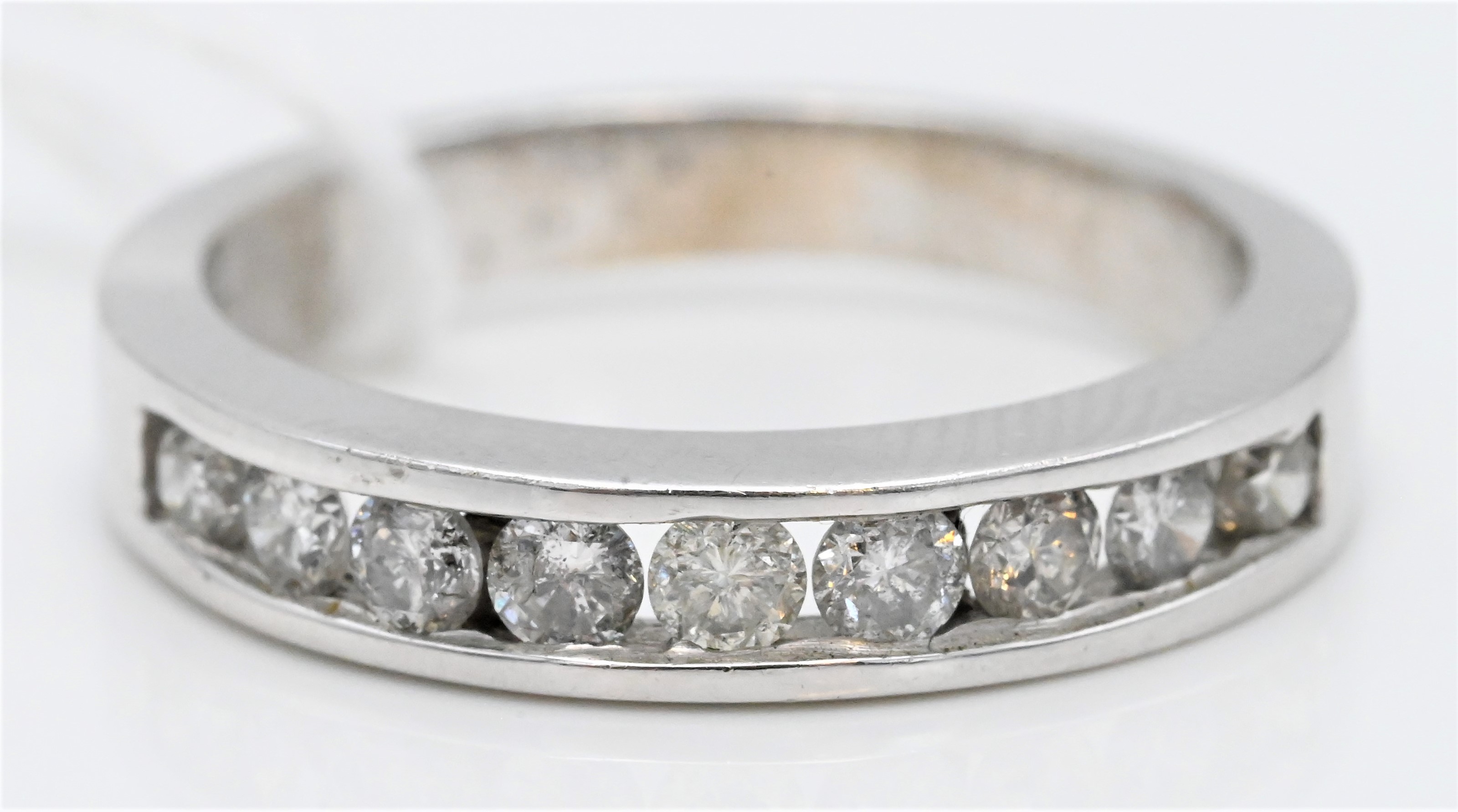14 Karat White Gold Ring, channel set with nine diamonds, size 8 1/2, 5 grams.