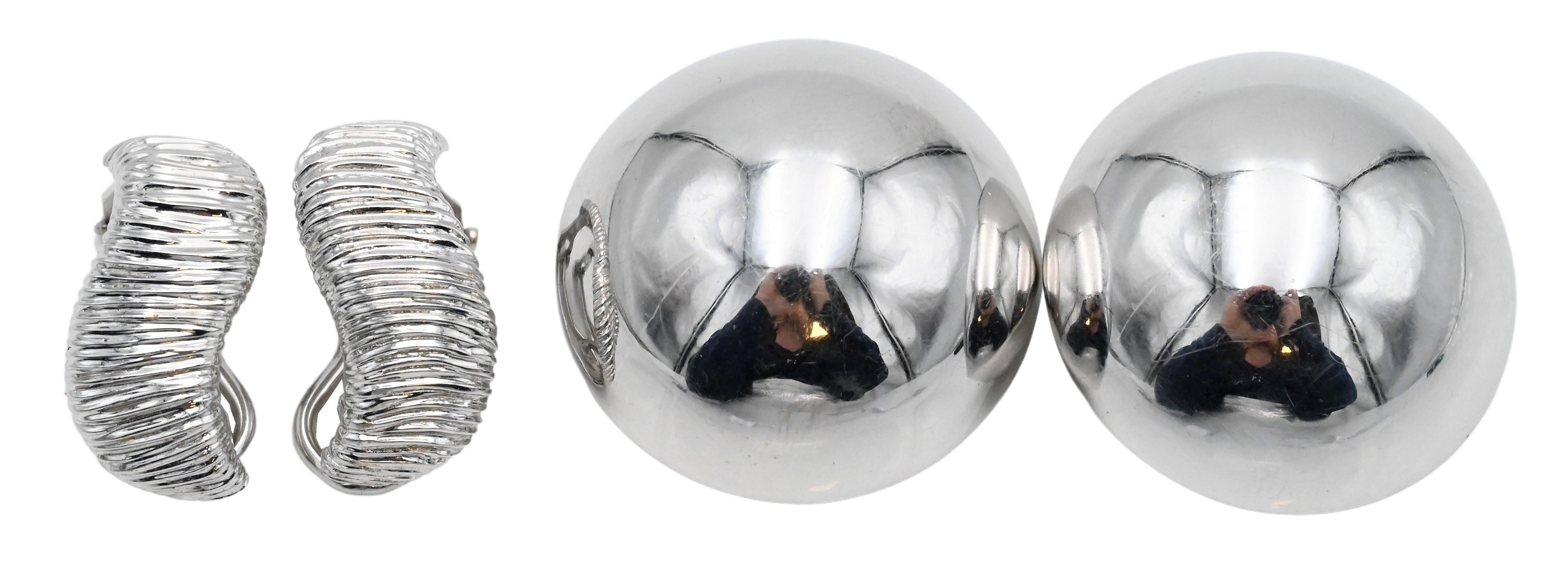 Two Pairs of 18 Karat White Gold Ear Clips, 31.9 grams.
