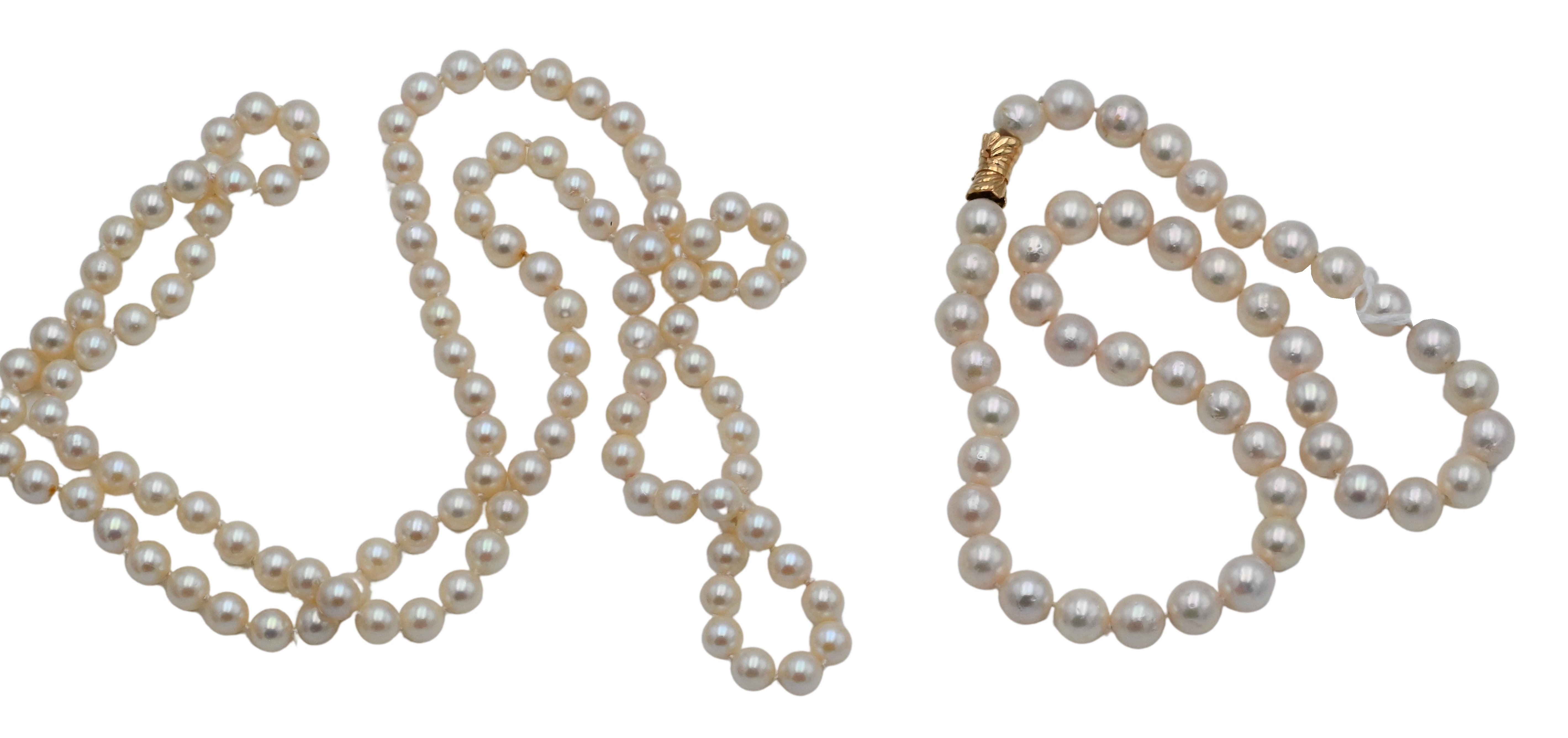 Two Single String Pearl Necklaces, one having a gold clasp.
