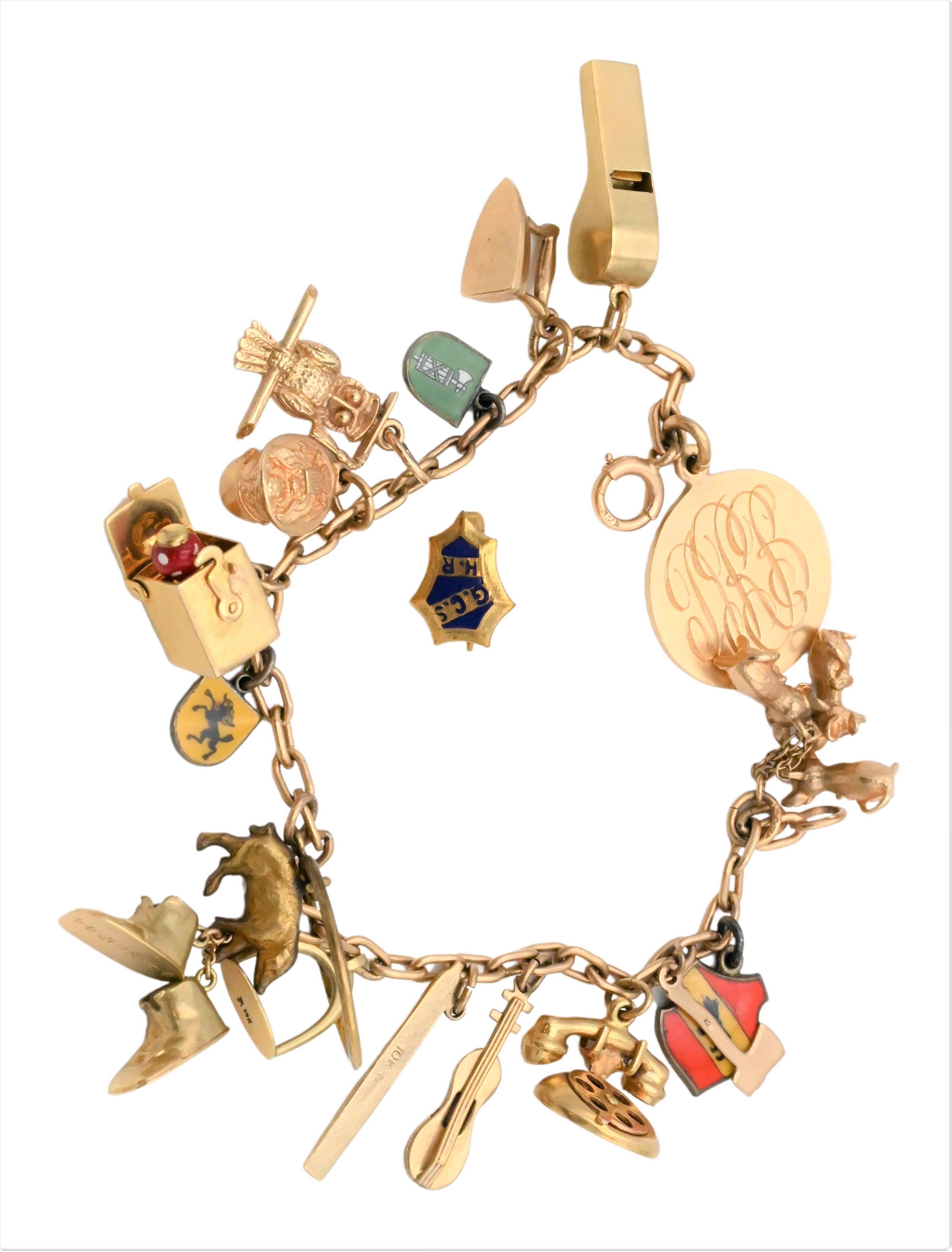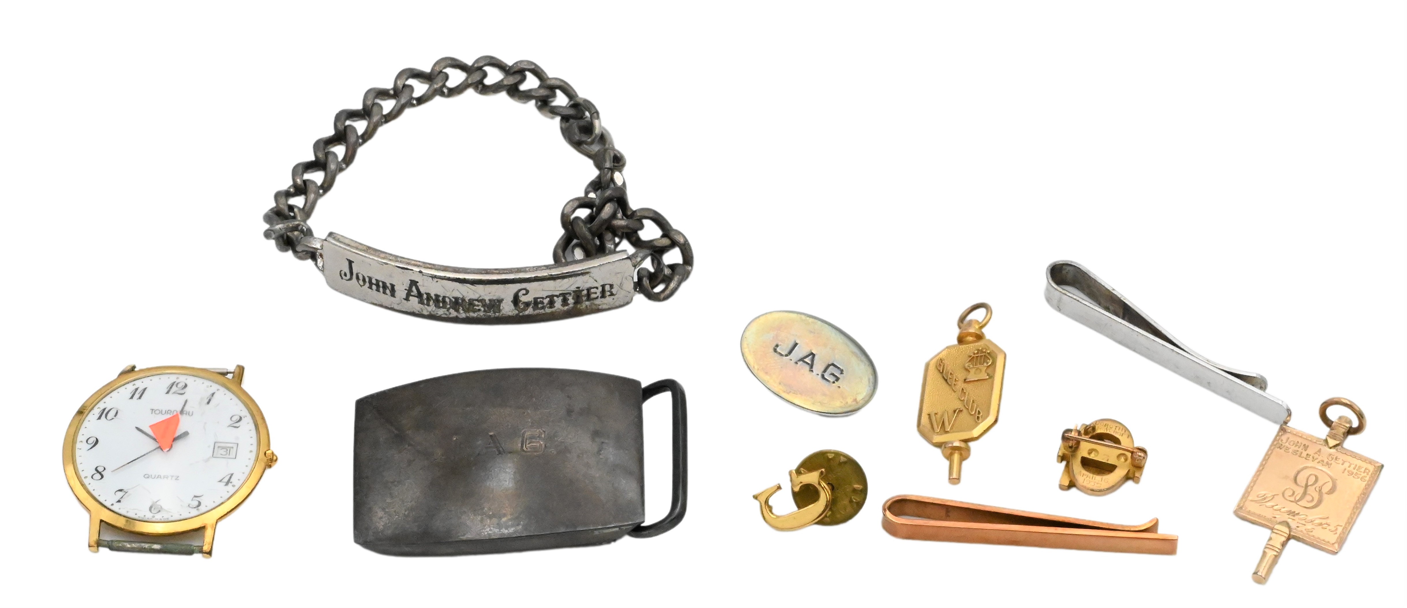 10 Karat Gold with Platinum Ring Lot, to include bracelet, pins, pair of cufflinks approximately 40 grams, along with sterling silver in Mark Cross jewelry box.