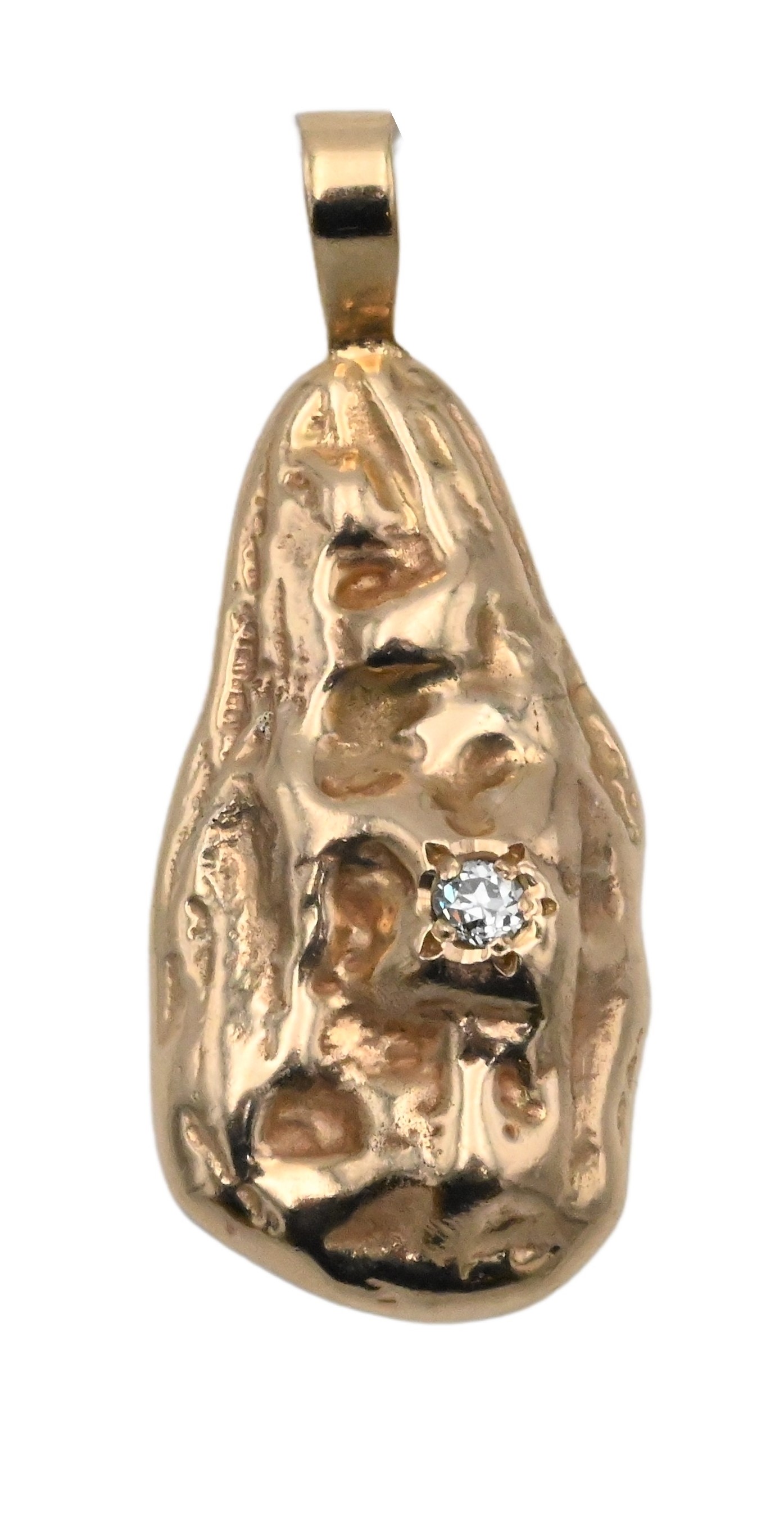 Nugget Style Pendant, set with one diamond, 21.8 grams.