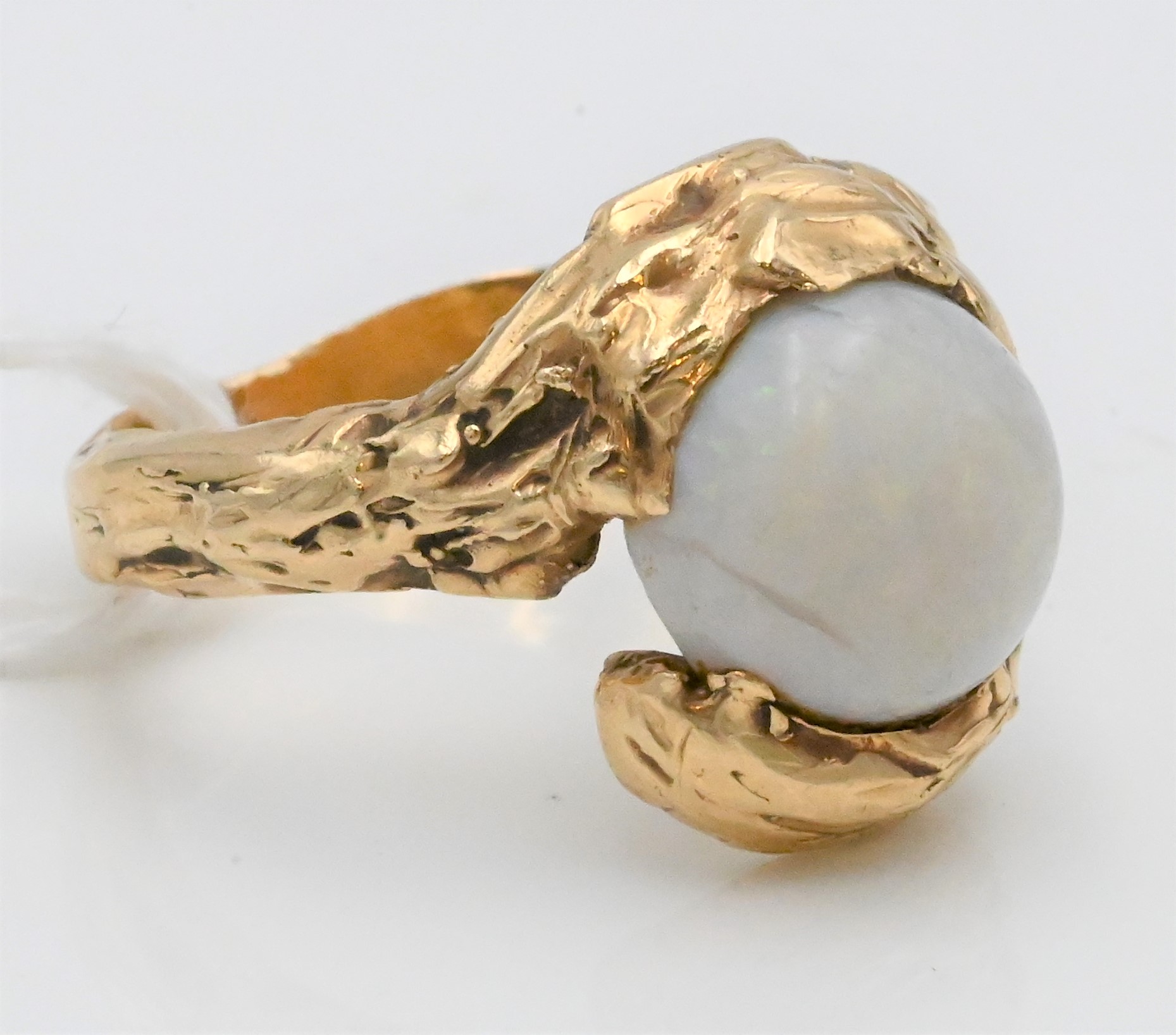 18 Karat Yellow Gold Ring, set with opal, size 6 3/4, 7 grams total weight.