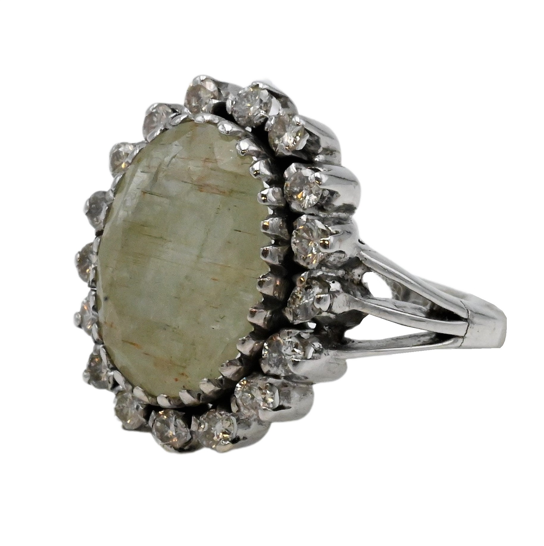 14 Karat White Gold Ring, set with center oval stone surrounded by diamonds, marked NMK, size 5 3/4, 7.1 grams total weight.