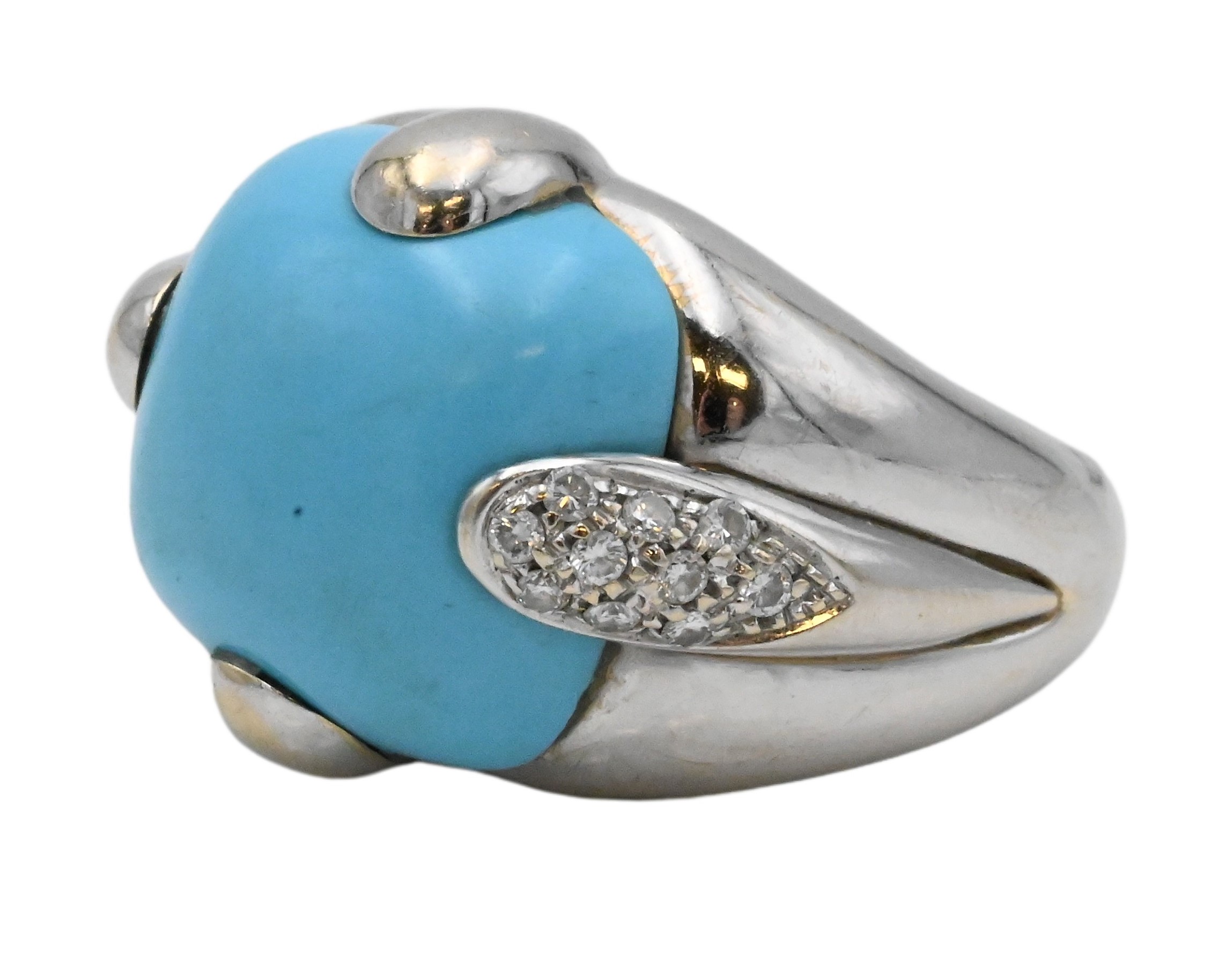 18 Karat White Gold Ring, set with turquoise, size 6 3/4, 12.4 grams total weight.