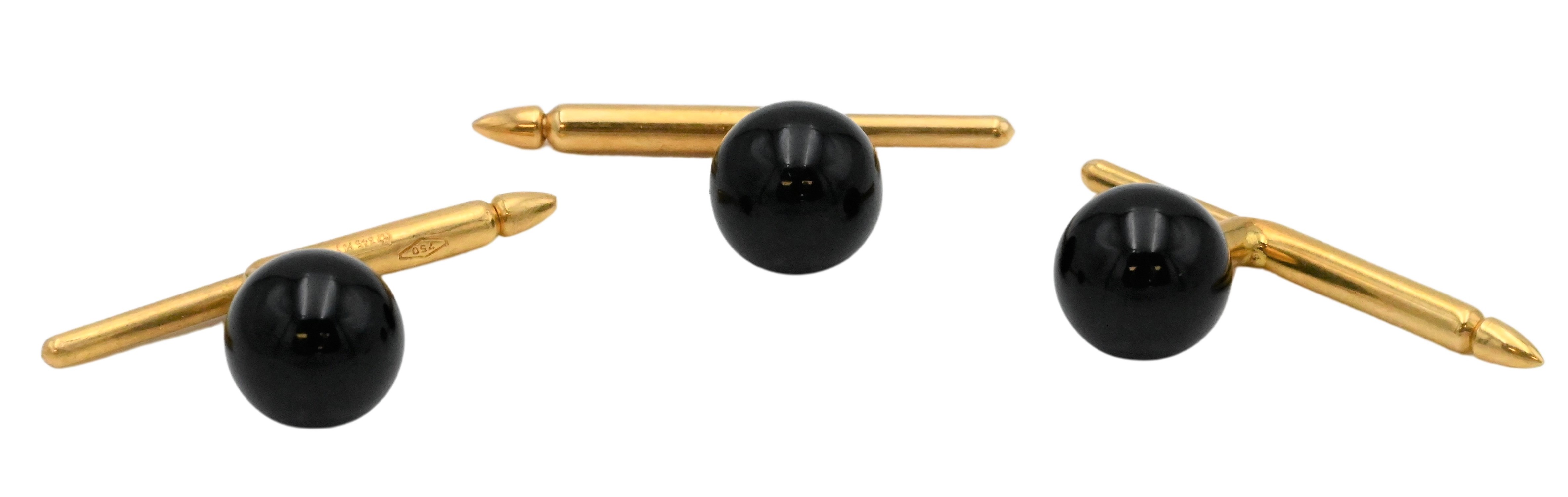 Three Tiffany & Company 14 Karat Gold and Onyx Shirt Buttons.