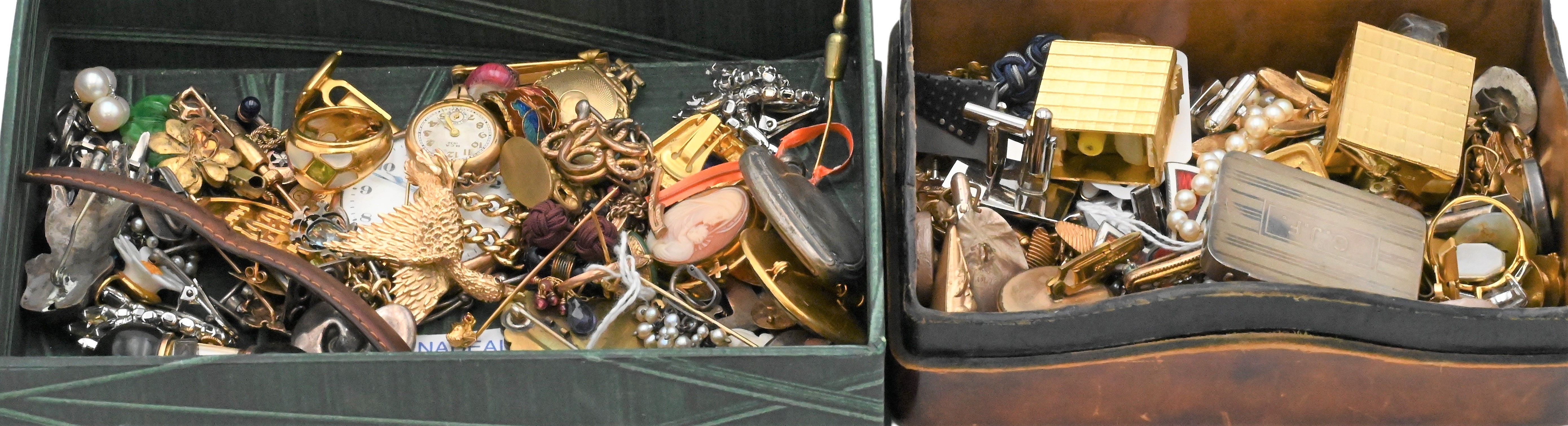 Large Lot of Gold, Silver and Vintage Costume and Victorian Jewelry, to include cufflinks, watch, pins, earrings.