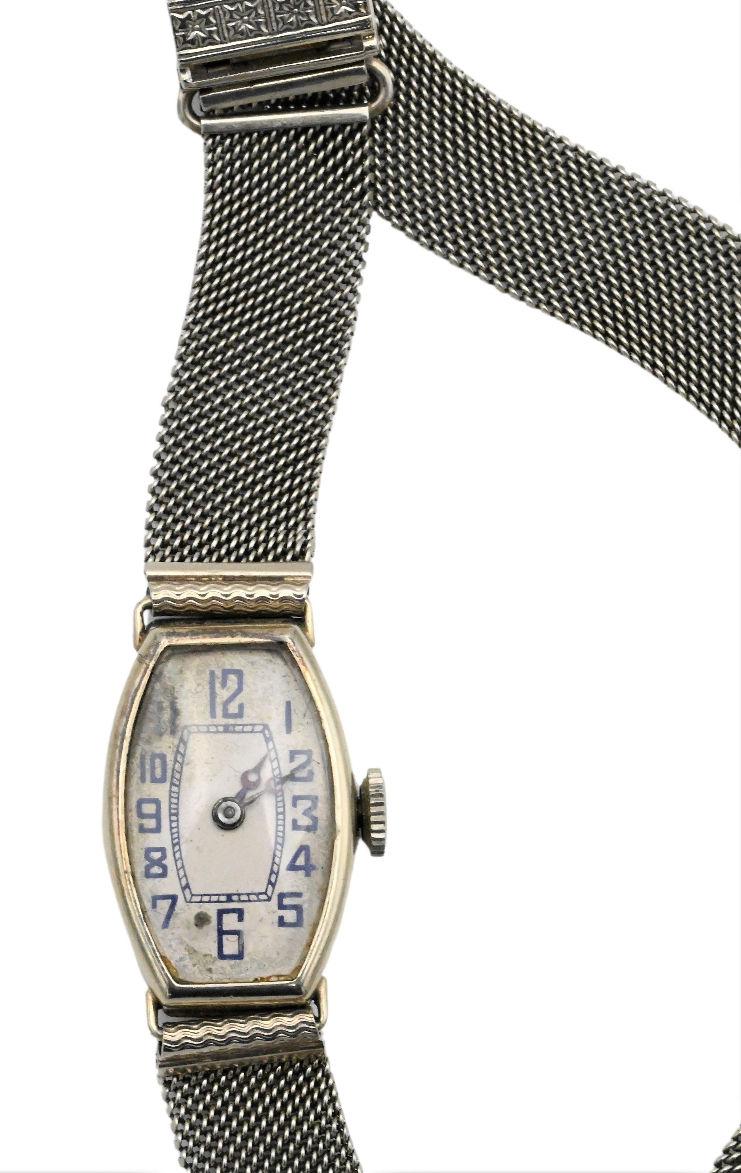 14 Karat White Gold Ladies Wrist Watch, having 14 karat mesh gold bracelet band, total weight 16 grams.