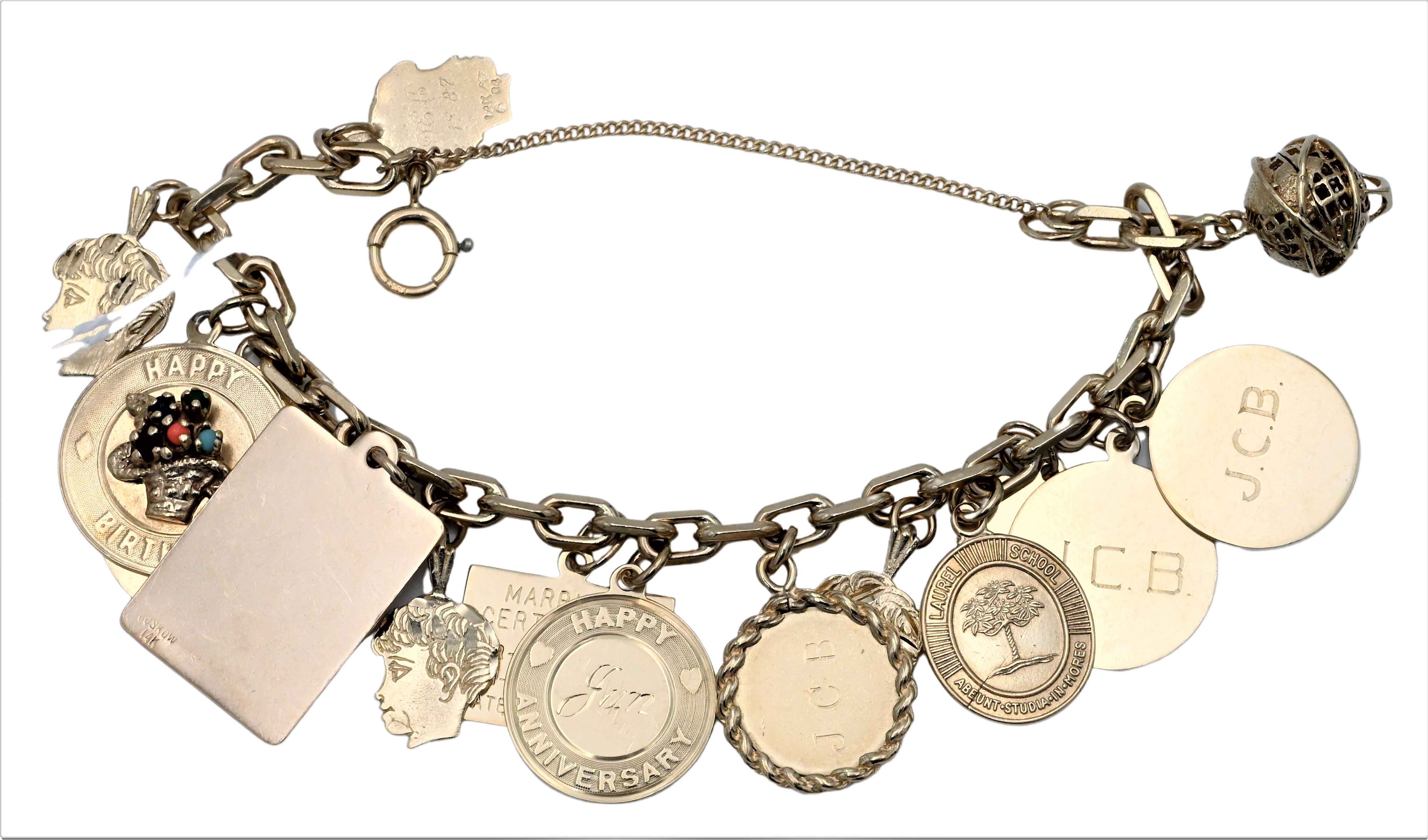 • Lot 185: 14 Karat Yellow Gold Charm Bracelet and Charms