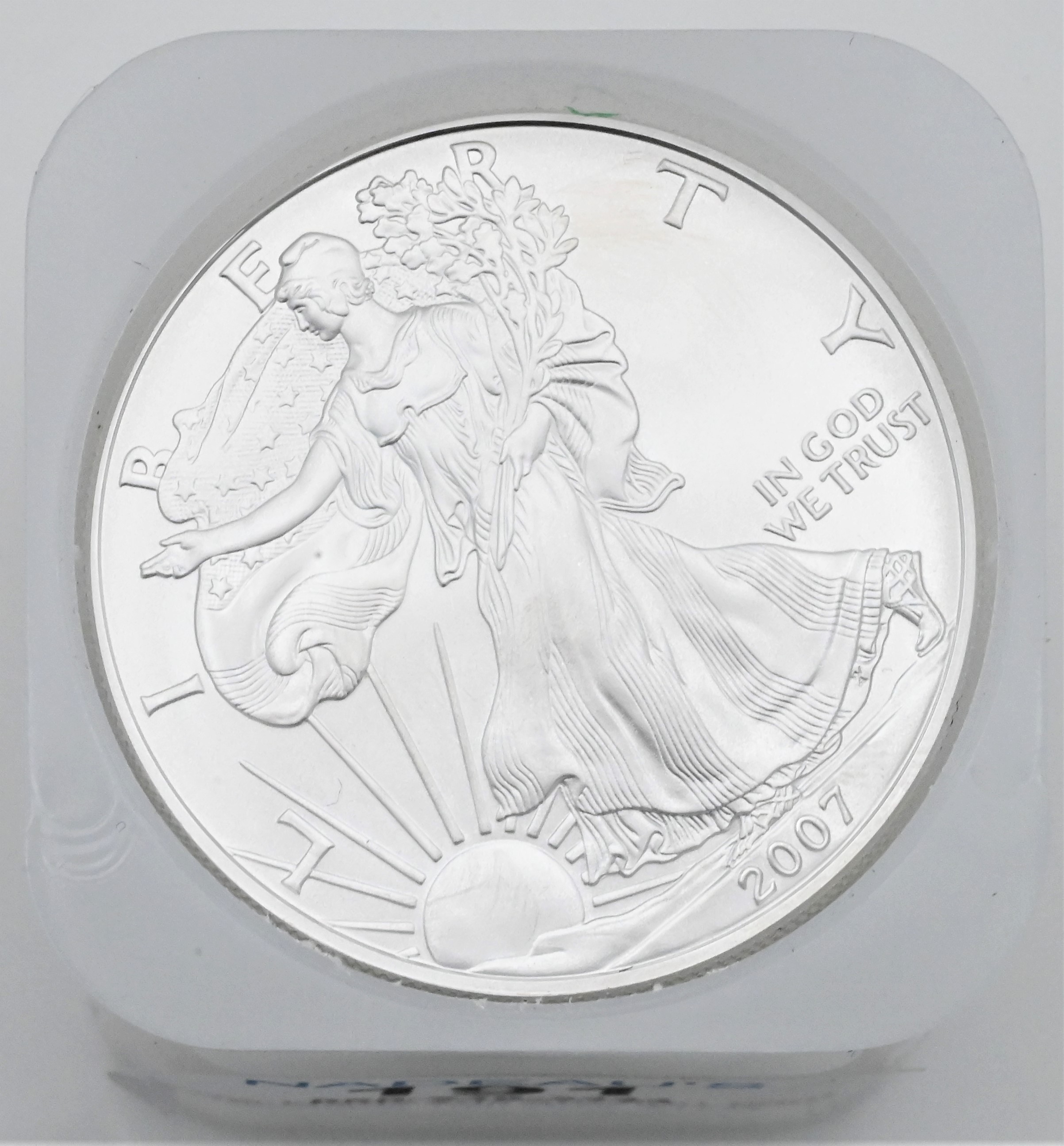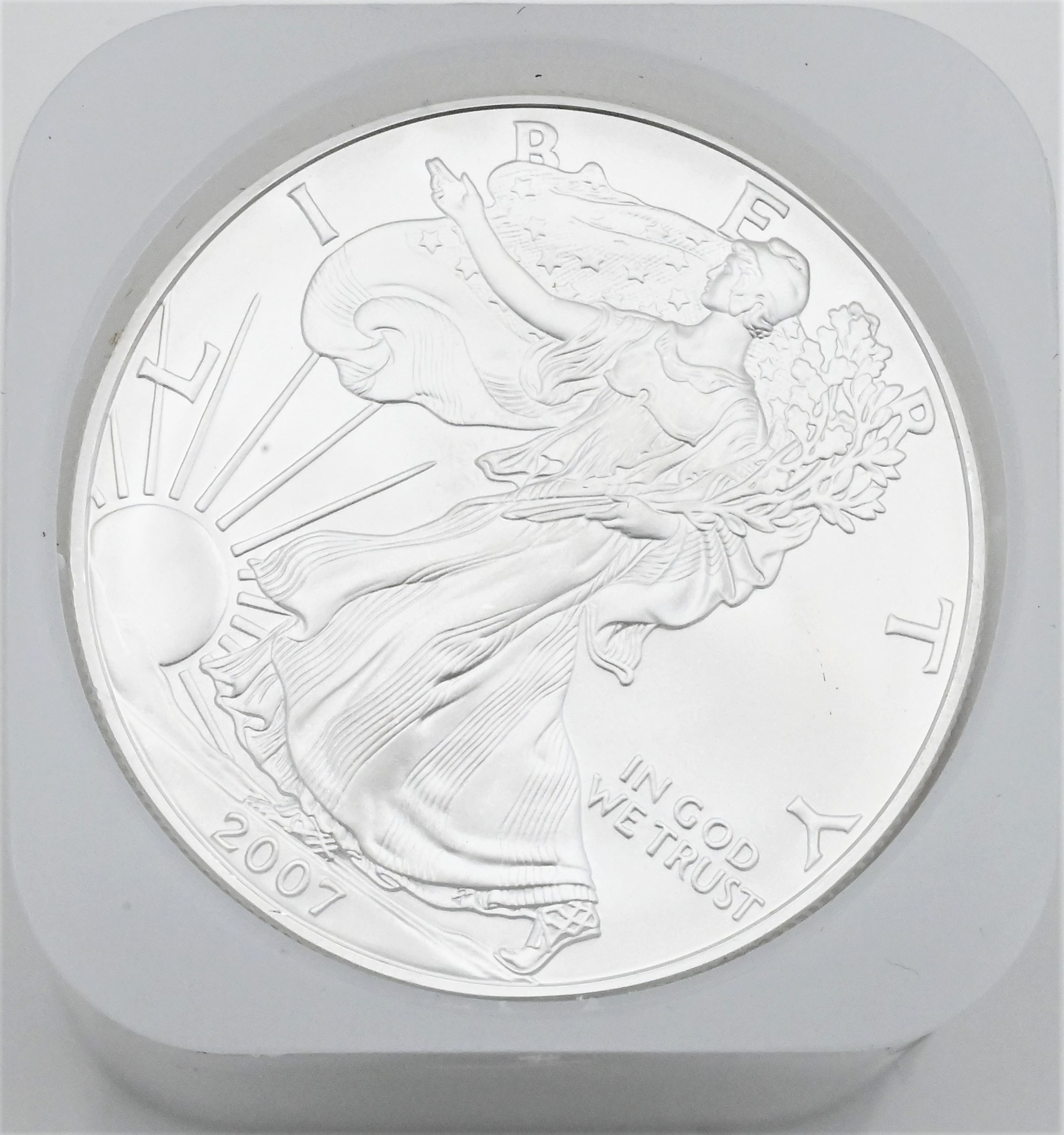 Roll of 20-2007 1oz. Silver American Eagle Dollar Coins BU,composed of 1 troy ounce of .999 silver.