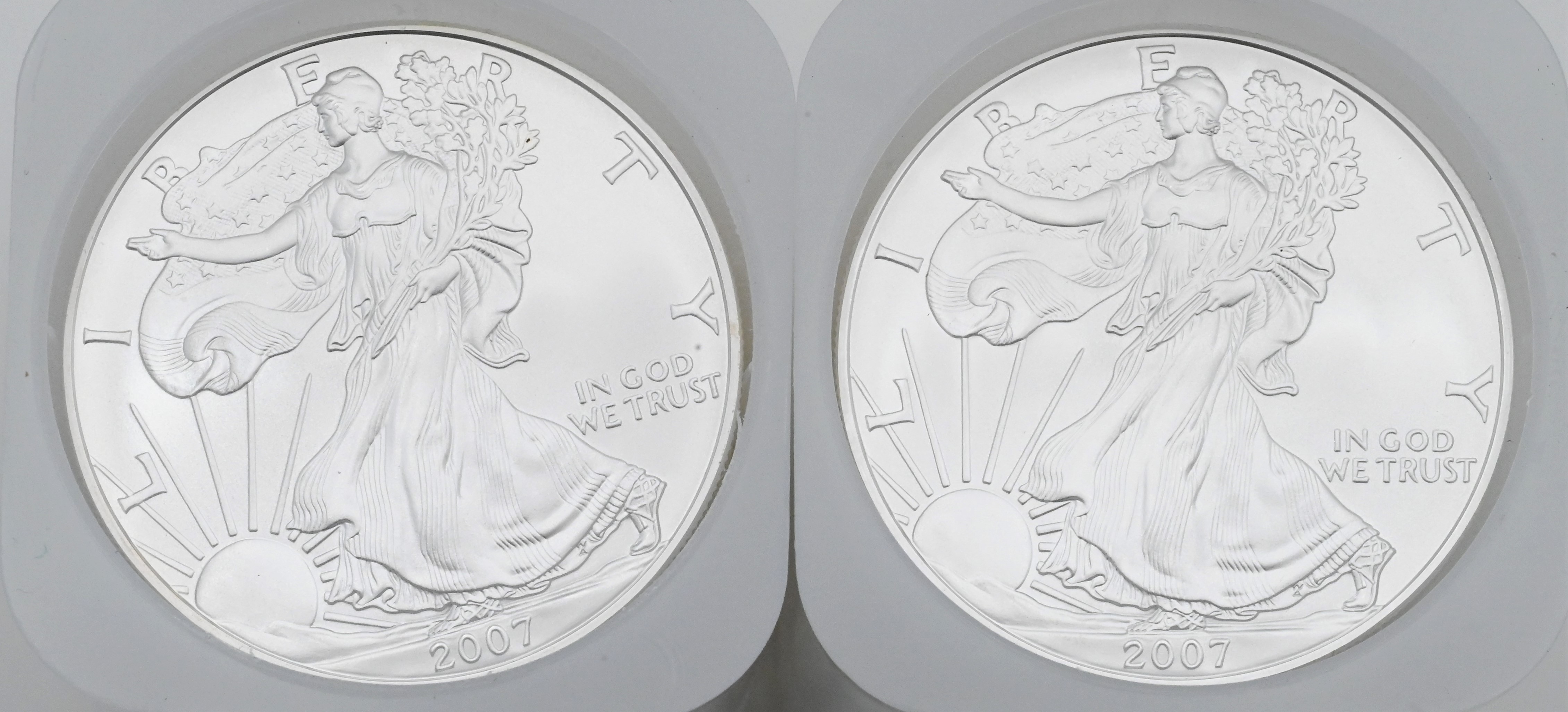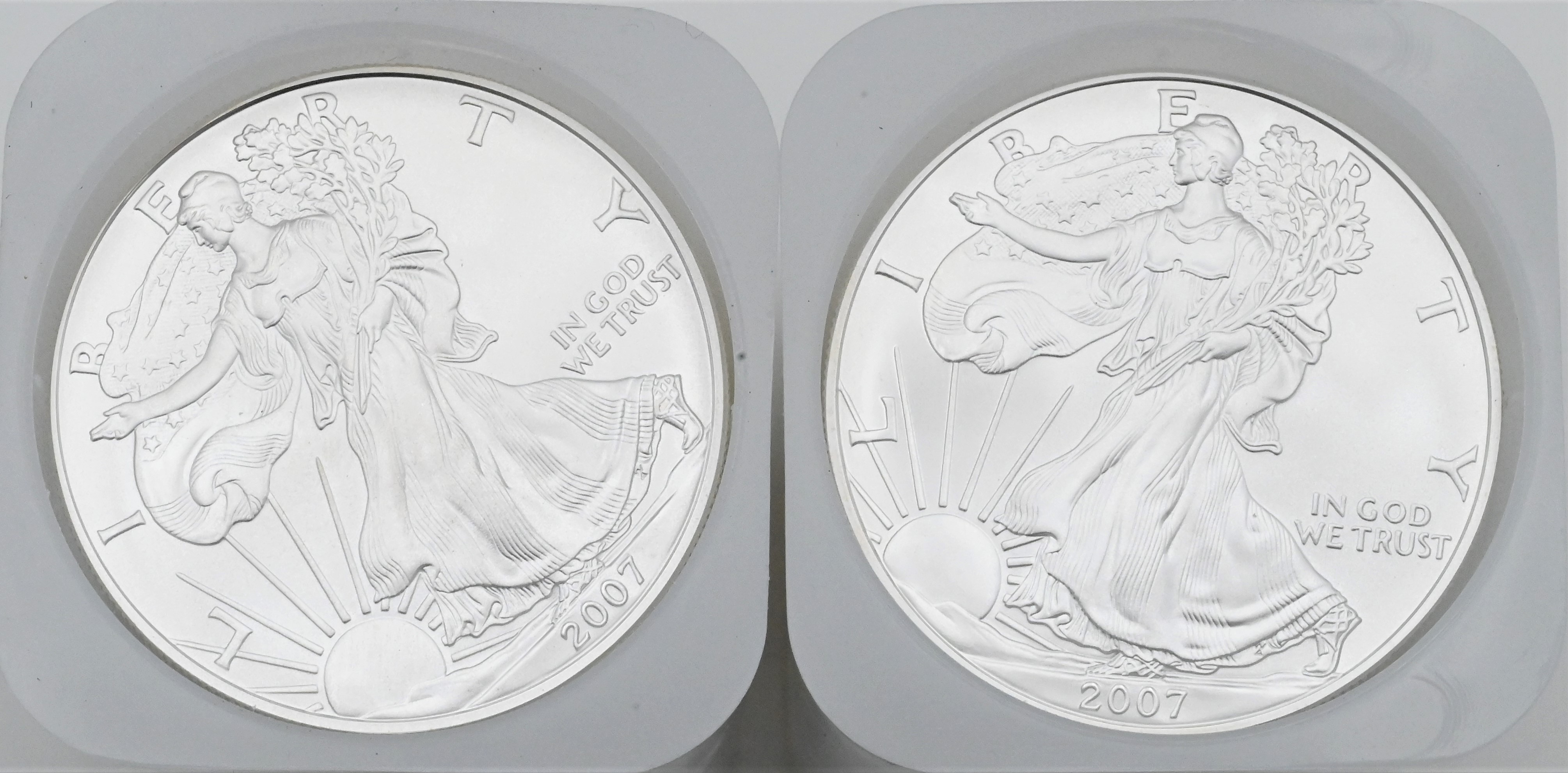 • Lot 195: Two Rolls of 20-2007 1oz Silver American Eagle Dollar Coins BU