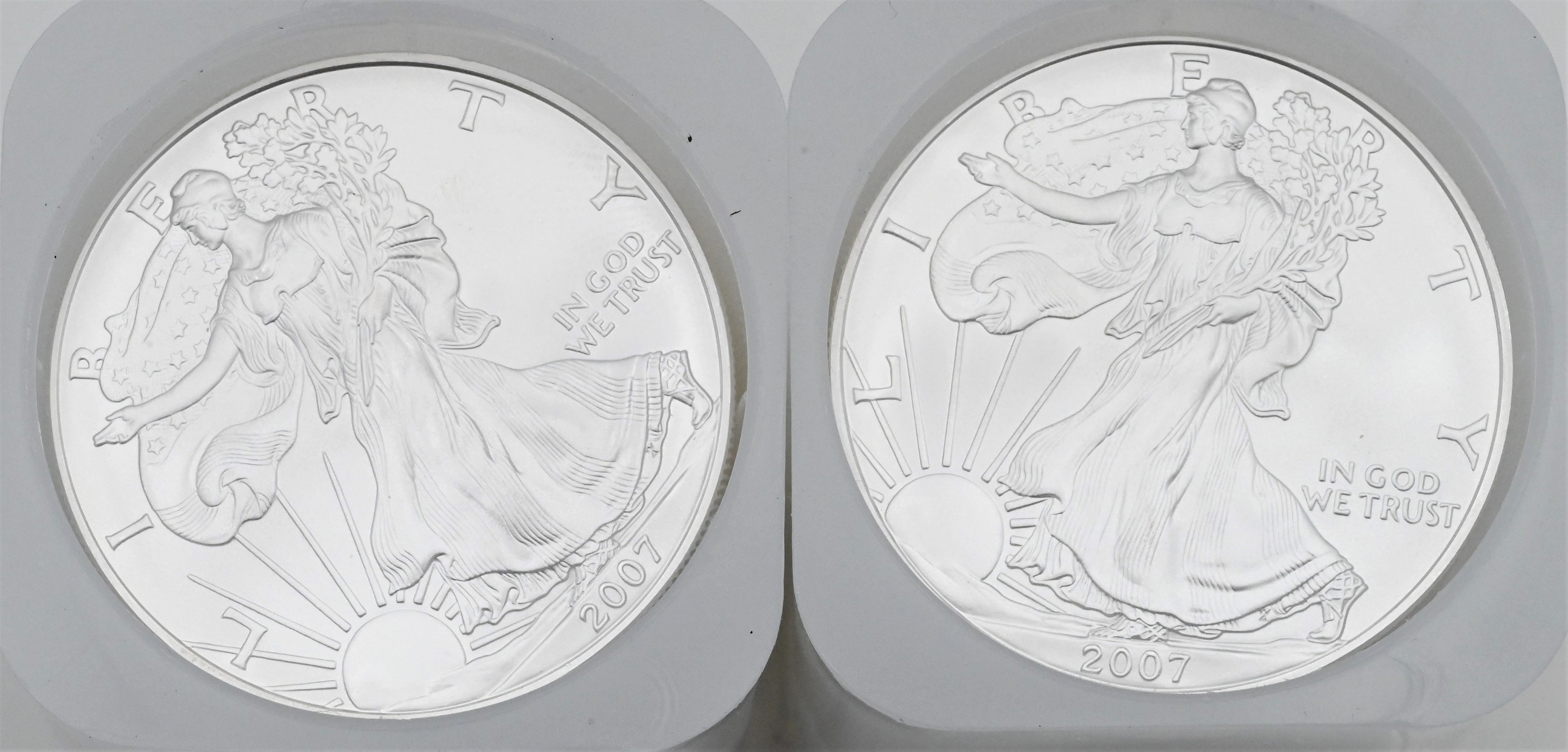 • Lot 194: Two Rolls of 20-2007 1oz Silver American Eagle Dollar Coins BU