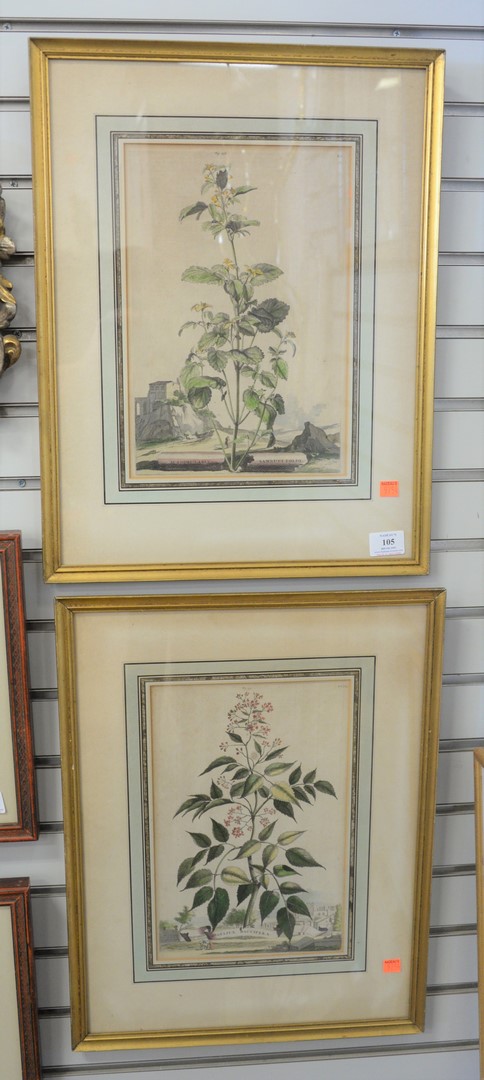Two Abraham Munting Dutch, 1626 – 1683, Angelica Baccifera and Scrophularia engravings on paper with hand coloring, each titled in plate along the lower edge, sight size each 13 x 9.