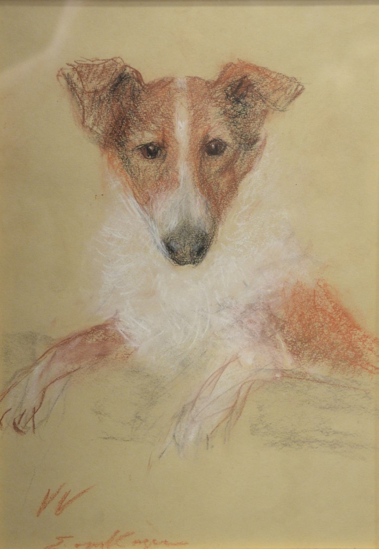 Edward Ferrell Sofa, having Knole drop ends with tassels, upholstered in tan ostrich skin with brown upholstered cushions, height 46 inches, length 120 inches, depth 38 1/2 inches.