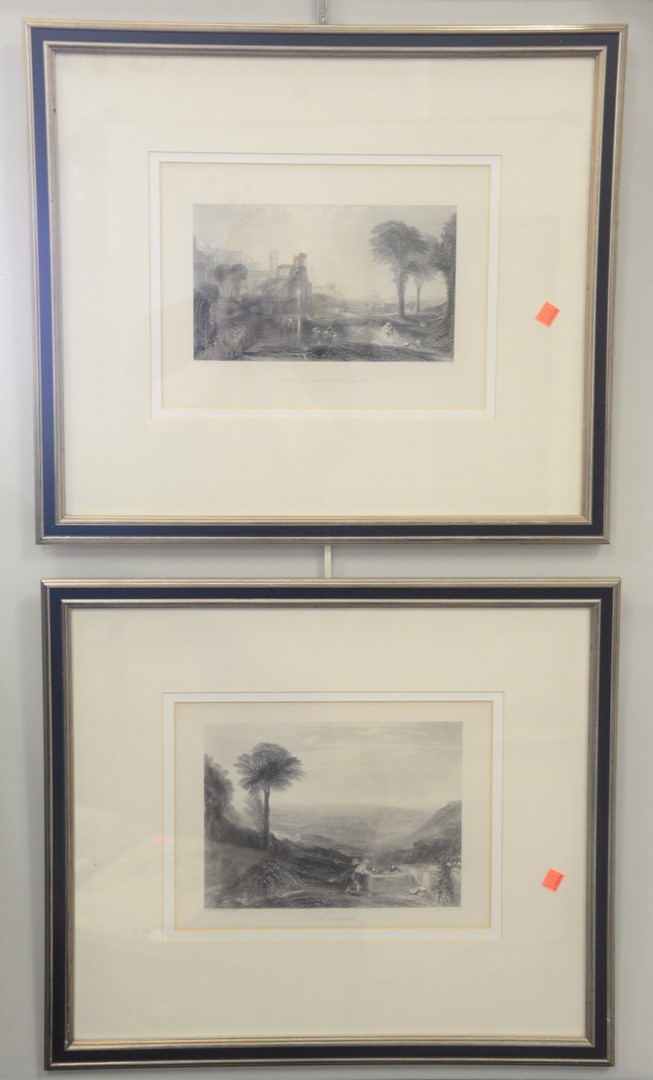 Grouping of Six J.M.W. Turner British, 1775 – 1851, Italian landscapes, engravings on paper, each titled in plate in the lower margin, sizes ranging from 6 x 10 to 7 3/4 x 10 1/2 image sizes.