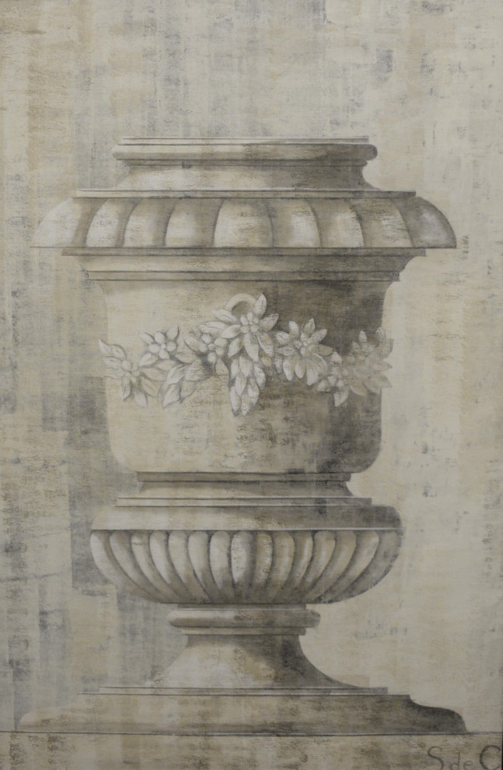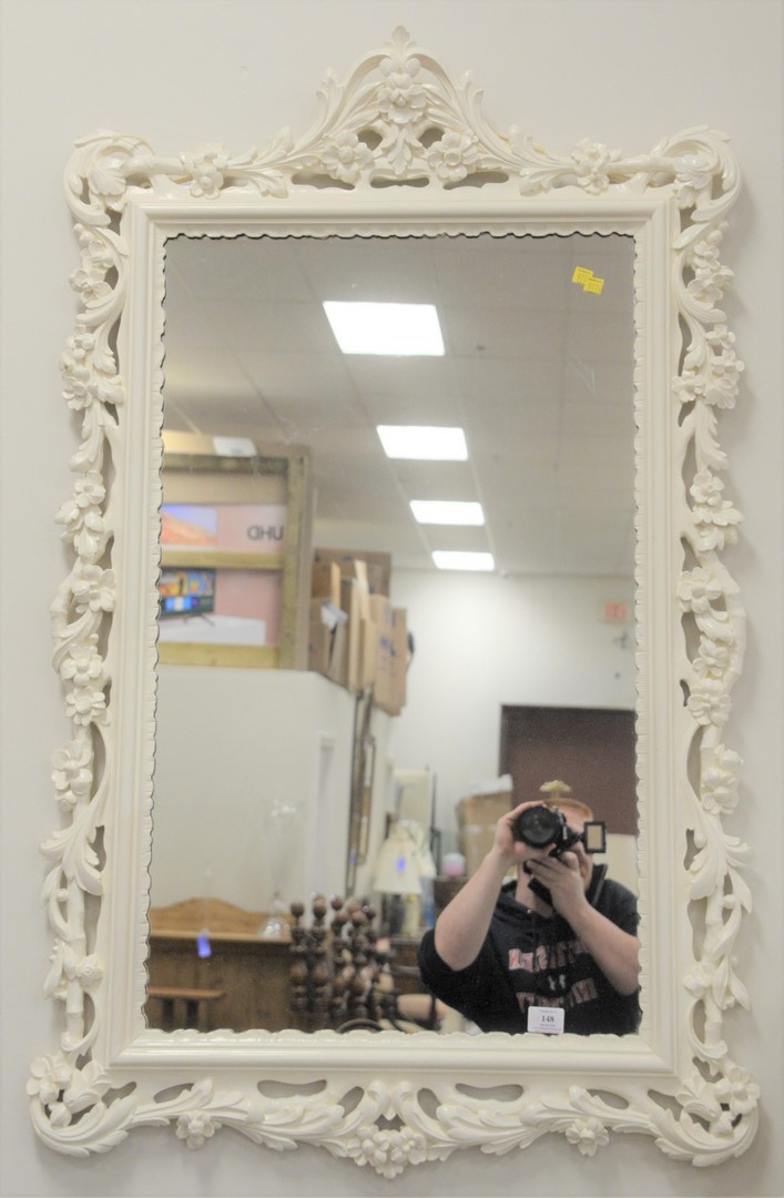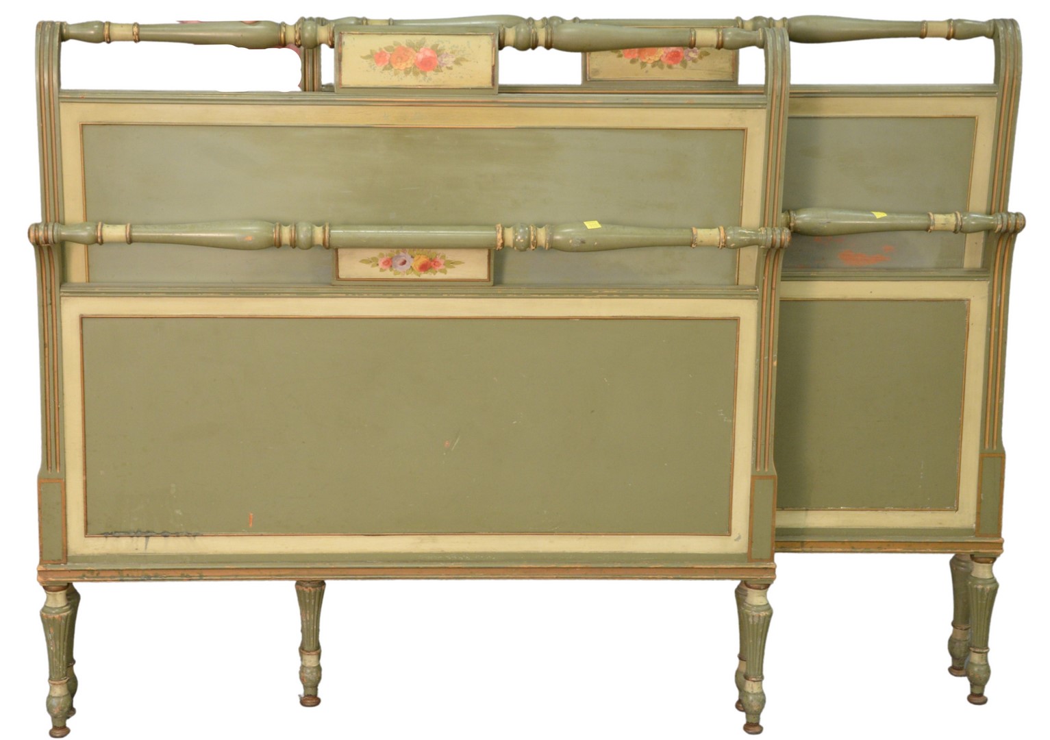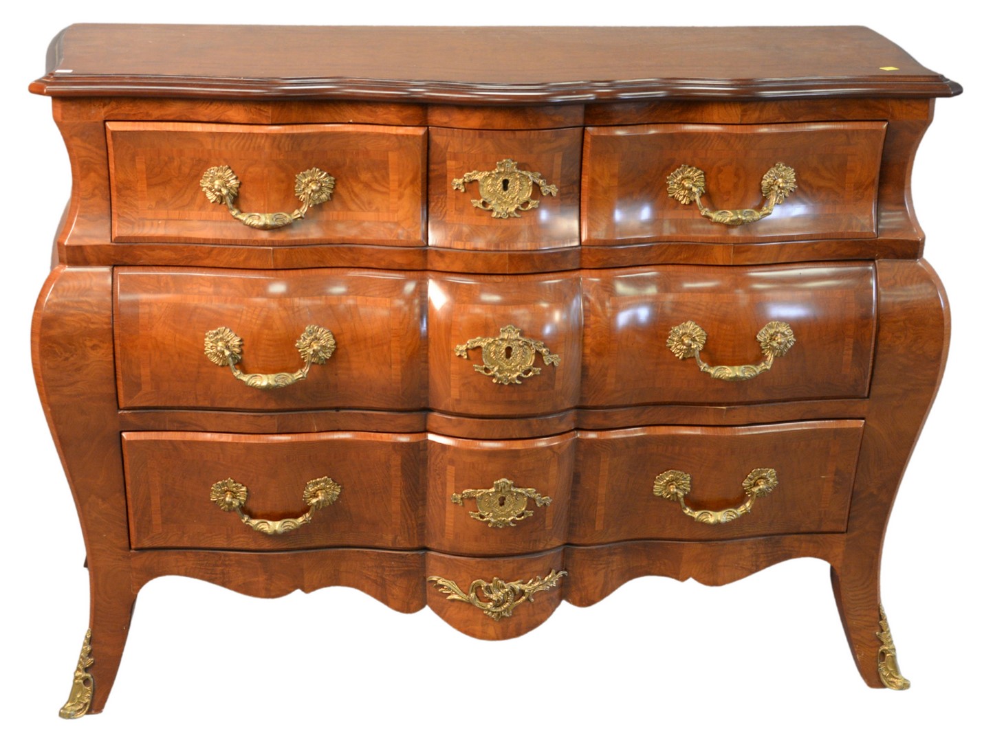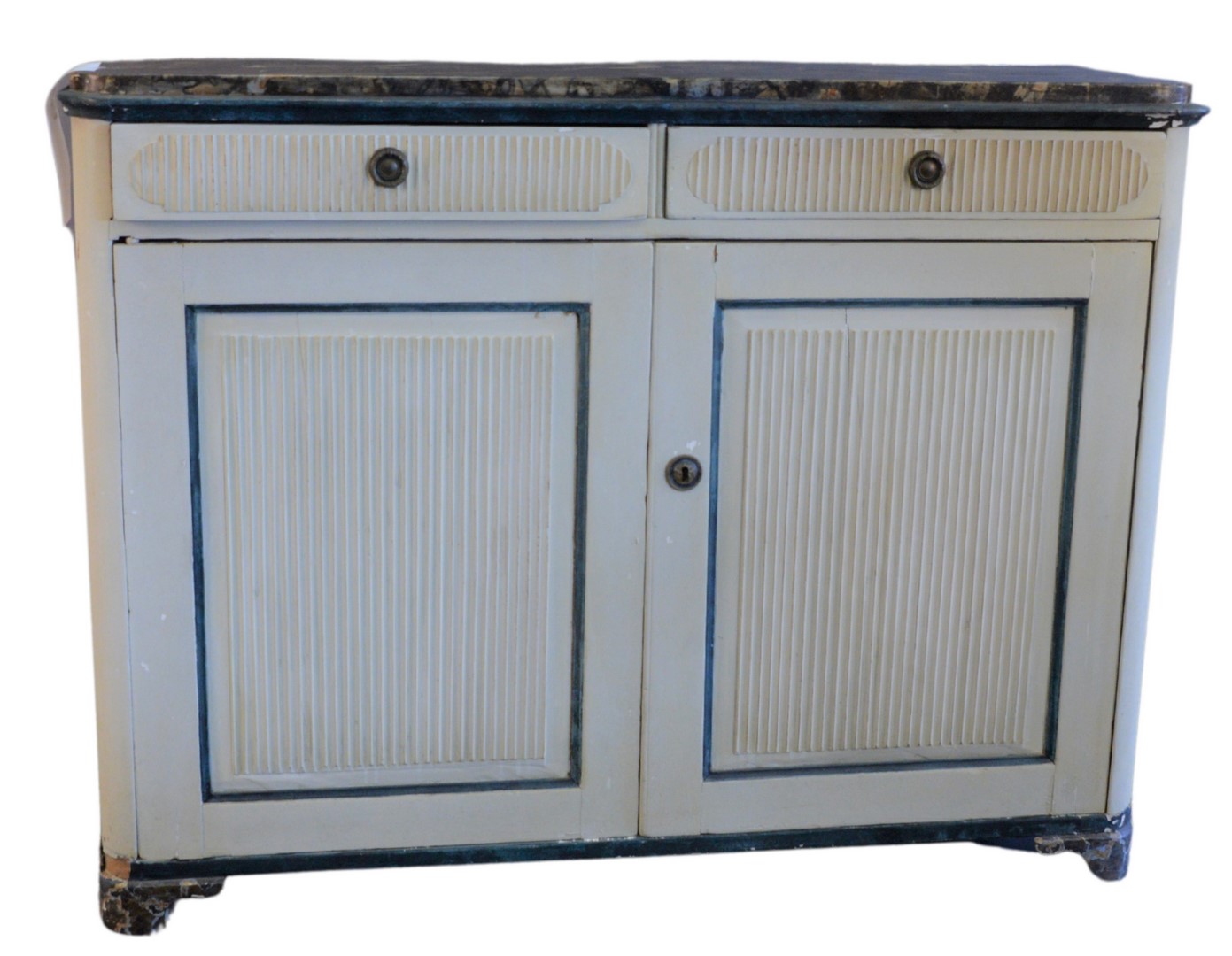 Continental Cabinet, having faux marble top, over two drawers, over twin doors, all with reeded, carved fronts, raised on ogee feet, height 42 inches, length 54 inches.
