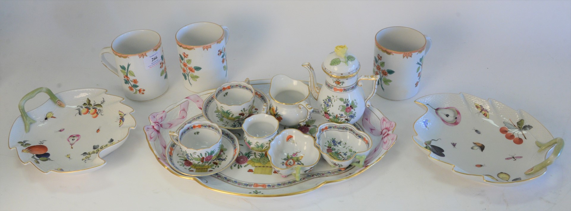 Fifteen piece Herend lot to include a Ten piece Herend Tea set, to include 2 tea cups, 1 tea pot, 1 saucers, 1 cream, 1 sugar, along with 5 other Herend pieces in various patterns, length 16 inches tray.