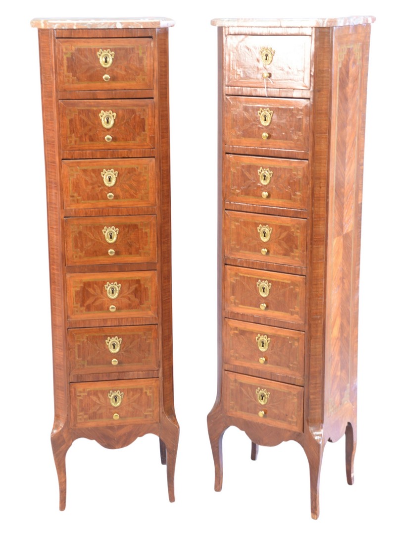 Five Piece Lot, to include diminutive 3 drawer chest with faux marble top, height 25 1/2 inches, top 13 x 23 iron base stand, with paint decorated top, table height 18 1/2 inches, top 13 x 18 along with a Louis XVI Style armchair, slipper chair, and armchair with caned back.