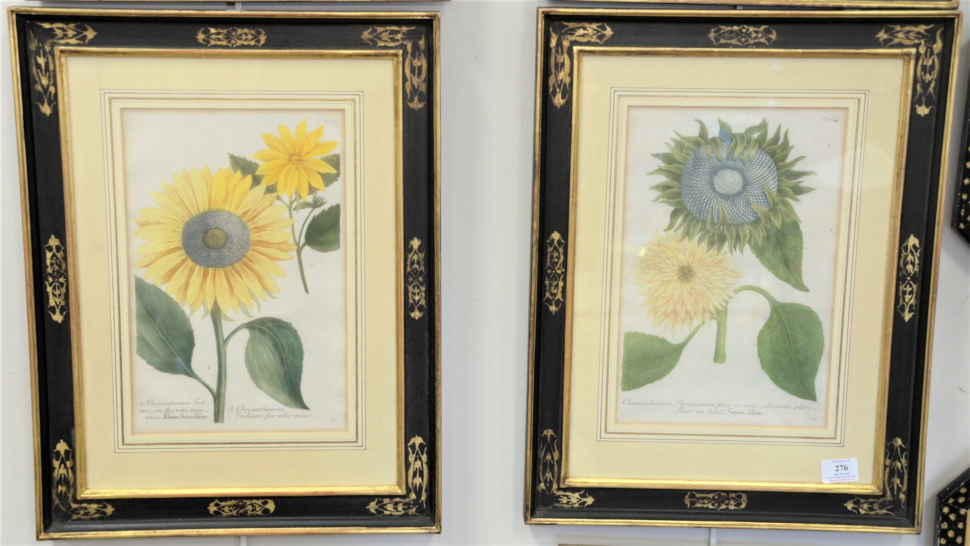 Set of Four Johann Wilhelm Weinmann 1683 – 1741 Botanical Hand Colored Engravings, of chrysanthemums, each matted in black and gilt frames, each sight size 13 1/4 x 8 3/4.