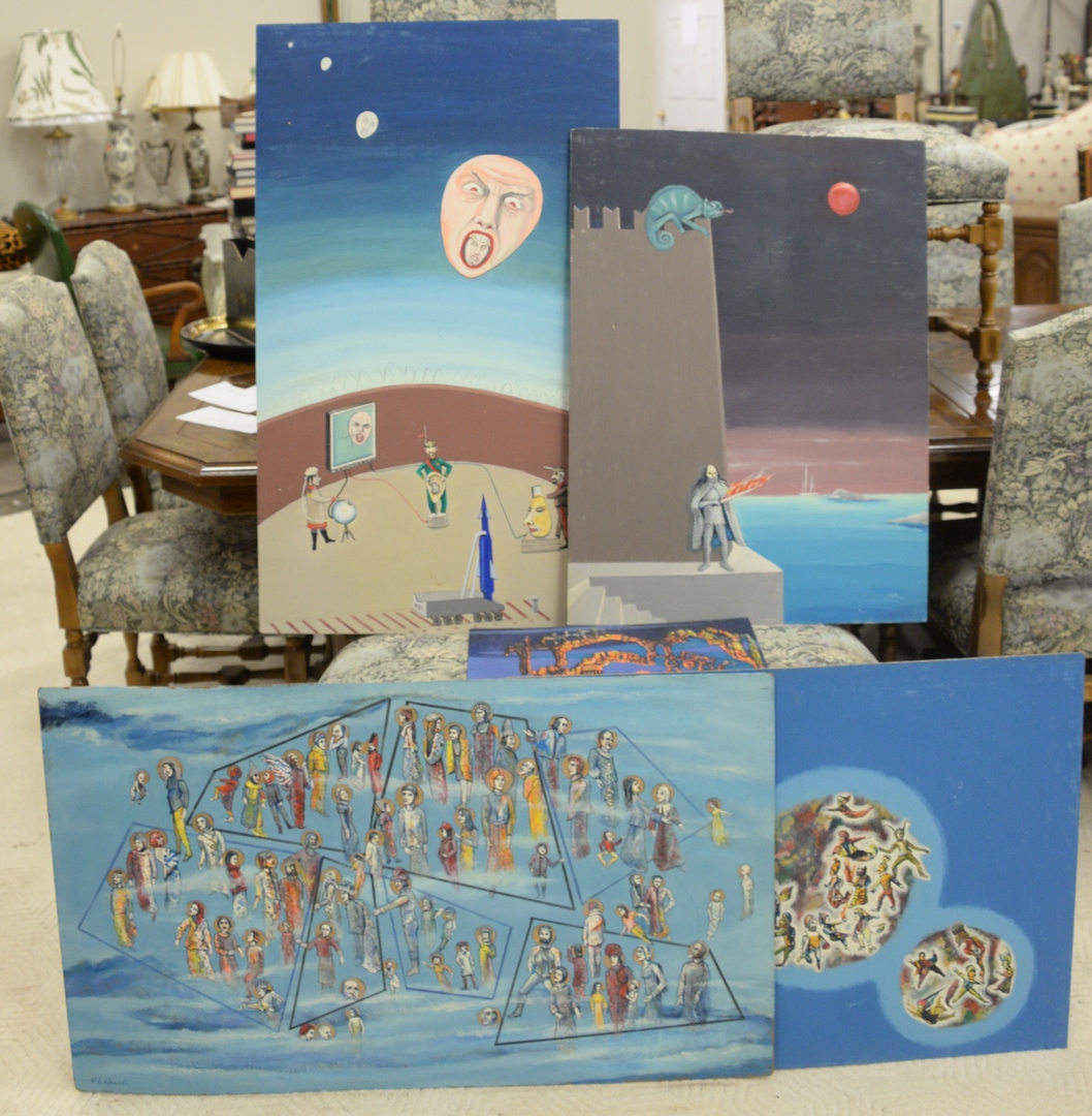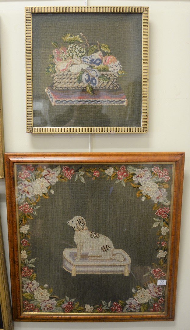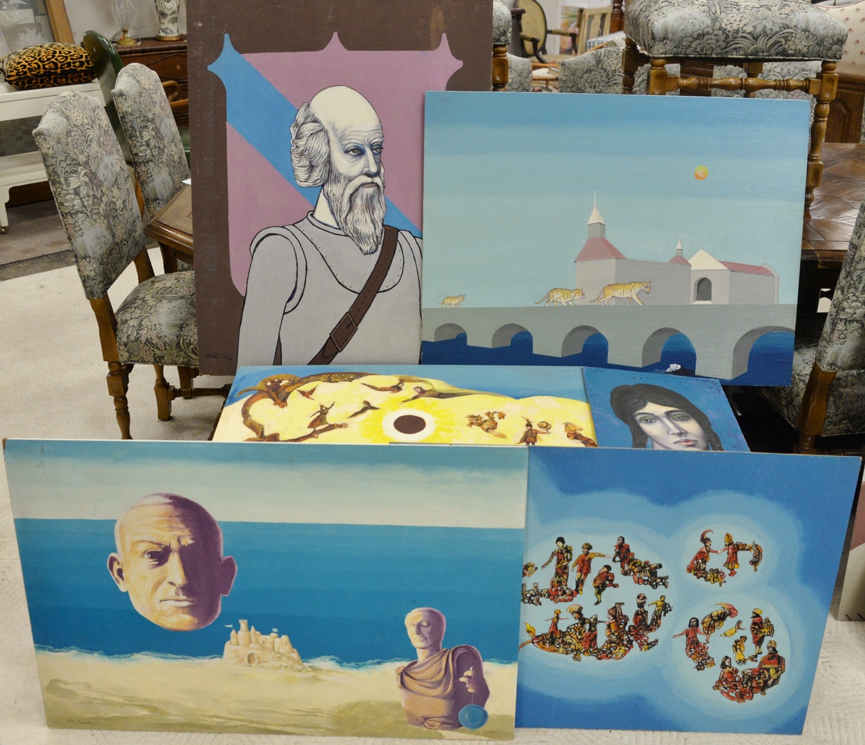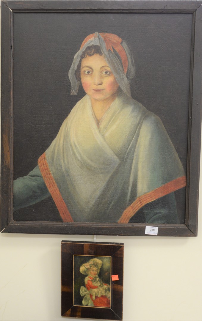 Two Piece Group, to include one large portrait, possibly French, oil on canvas, unsigned, along with a small painting of a girl with a King Charles Spaniel, possibly initialed lower right, oil on canvas, 24 3/4 x 22, 7 1/4 x 5.