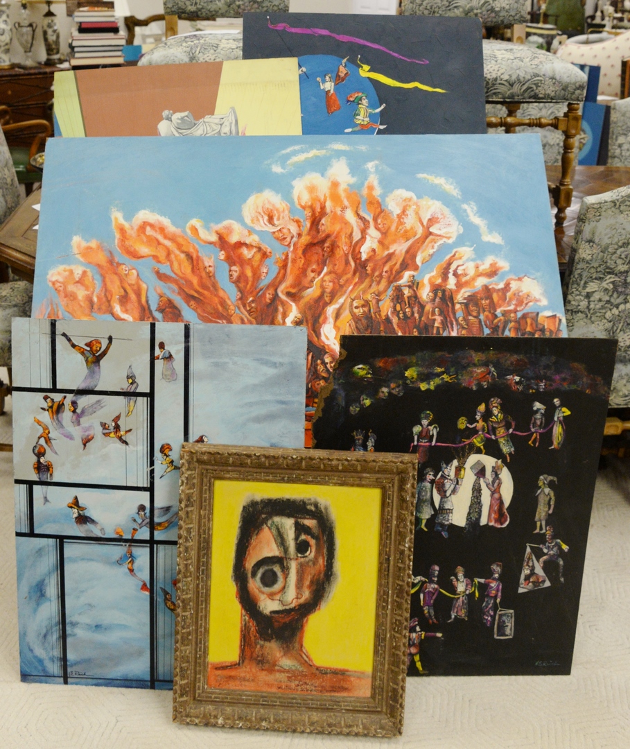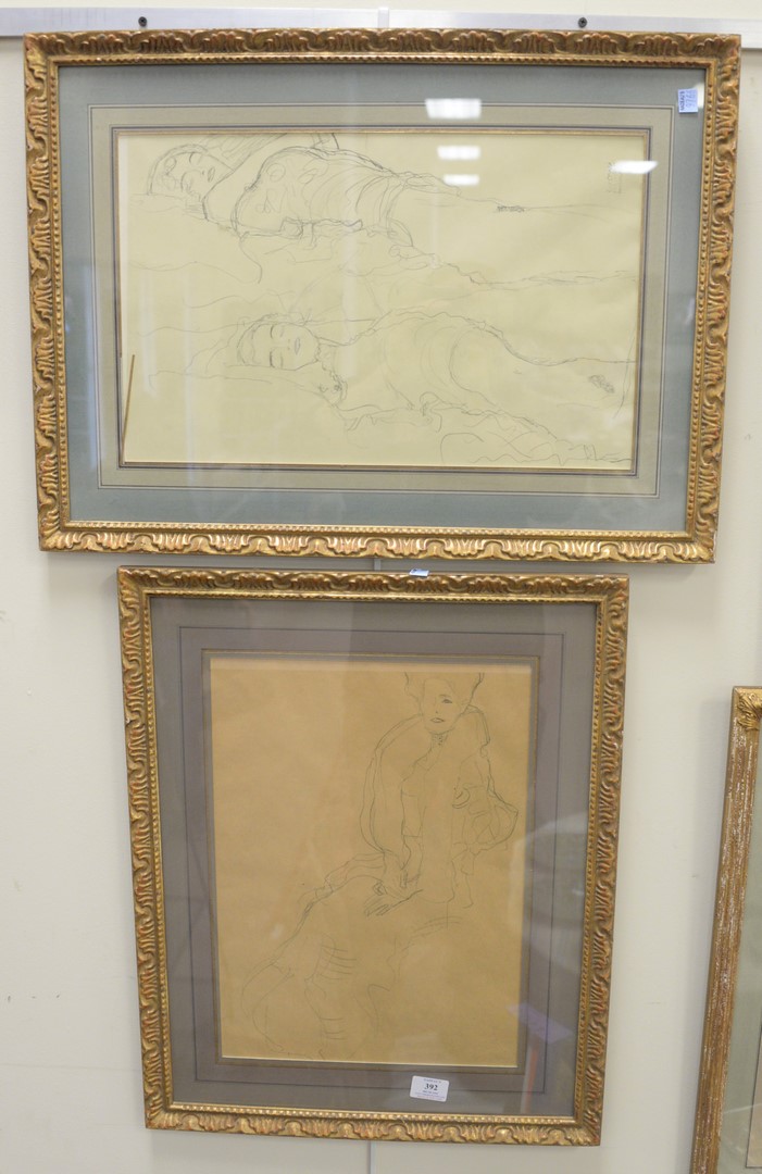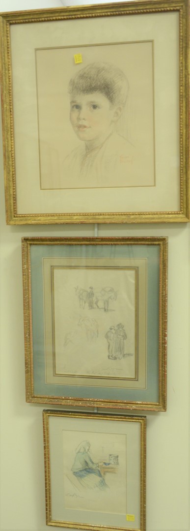 Six Piece Group of Framed Works on Paper, to include five watercolor and pencil sketches by Erica Von Kager along with a pencil on paper of a young boy by Freda Delaney, largest image 13 1/2 x 17.