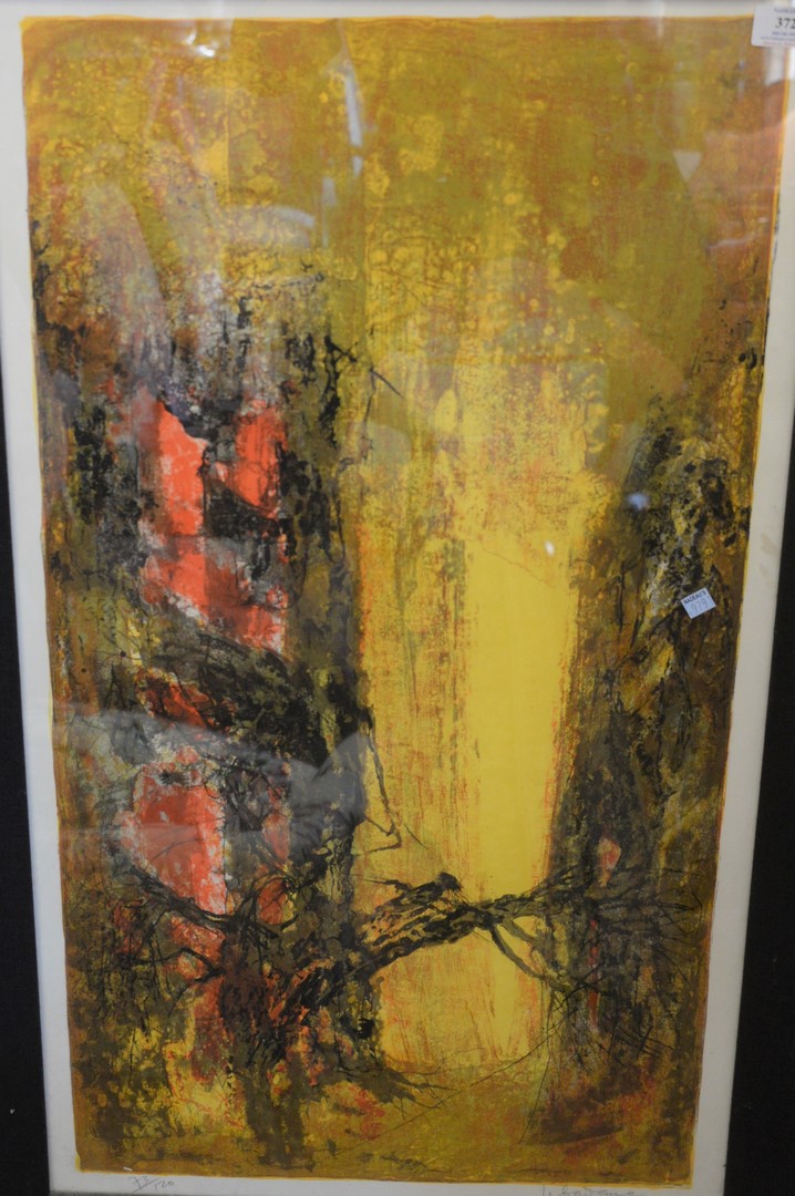 Dang Lebadang Vietnamese, 1922 – 2015, untitled abstraction, lithograph in colors on paper, signed and numbered ’73/120′ in pencil along the lower margin, image size 36 1/4 x 19 3/4.