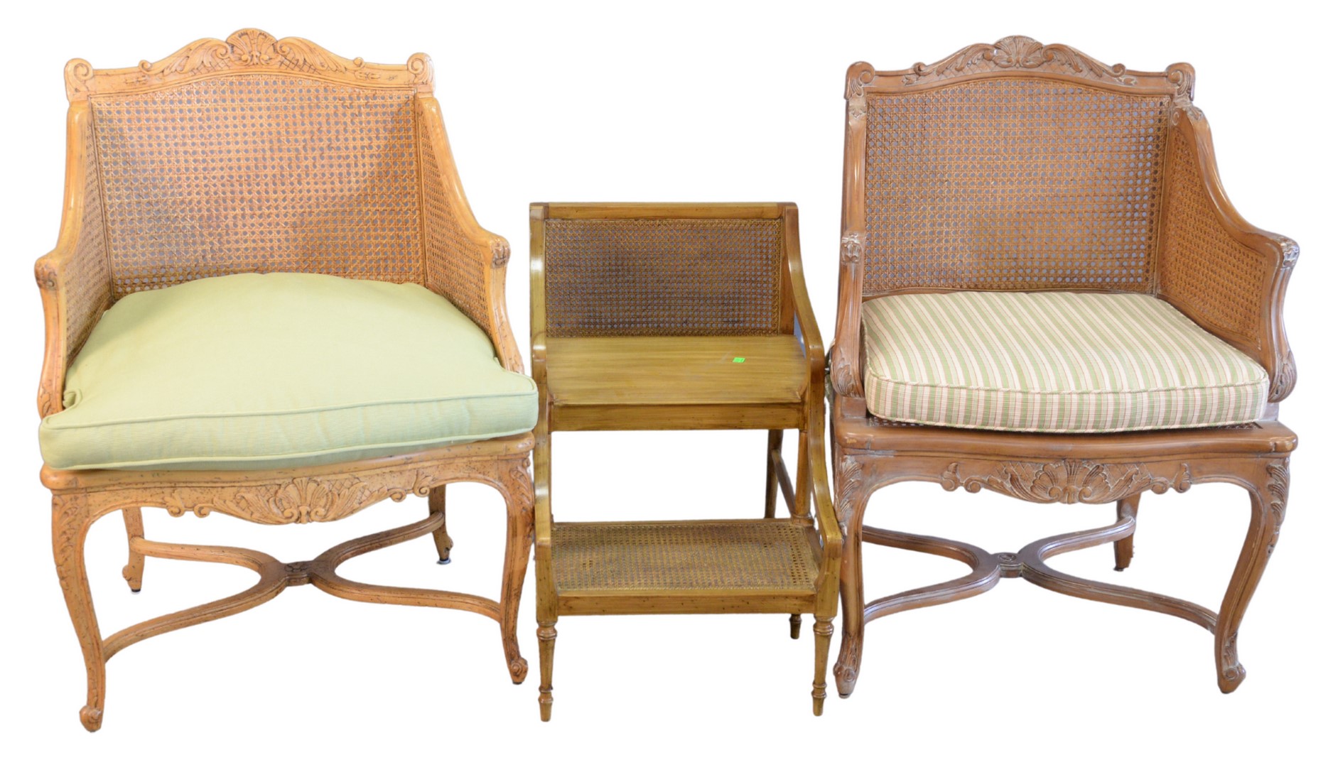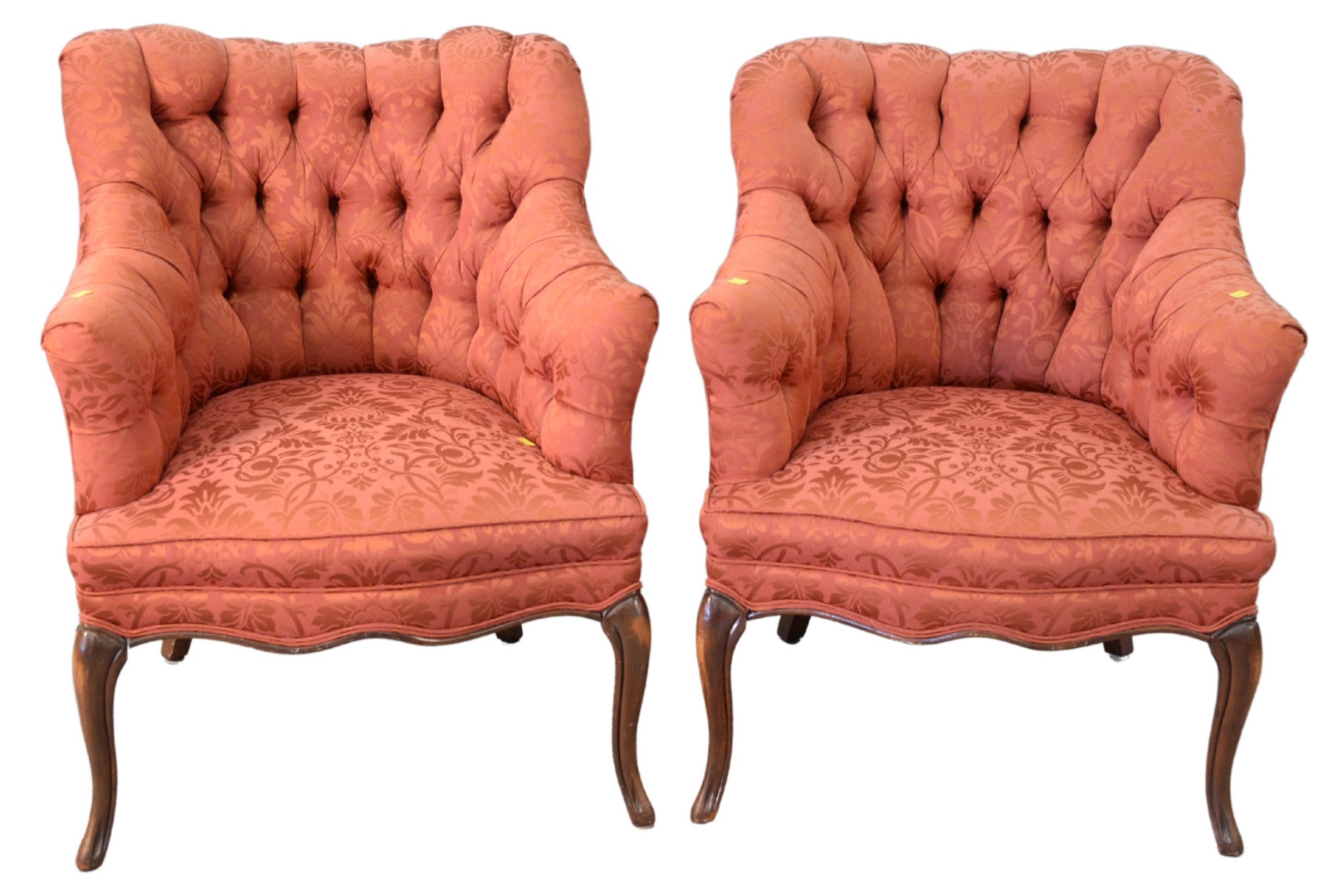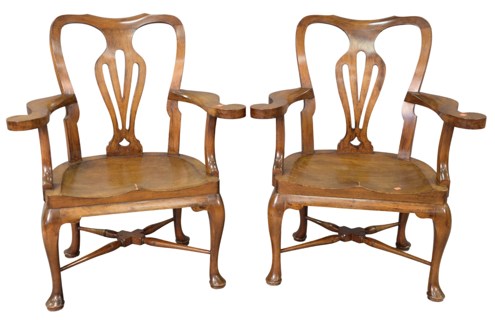 Pair of George II style Walnut armchairs on Cabriole legs ending in pad feet, height 37 inches, width 31 inches. Provenance: Christies, South Kensington, July 19, 2000, lot 52 Joanna Trading Present owner.