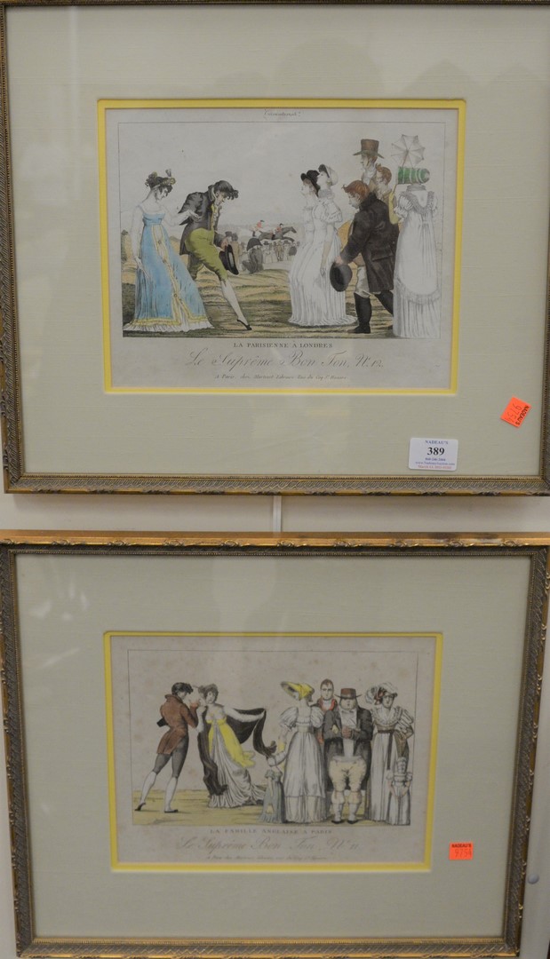 Five Piece Group of Engravings, to include Vincenzo Dolcibene, sonno giacente col euro ed altri simboli engraving pair of animal engravings, Asino goat and Bove bull two French colored engravings, La Famille Anglaise a Paris along with La Parisienne A Londres, largest sight size 12 x 18.