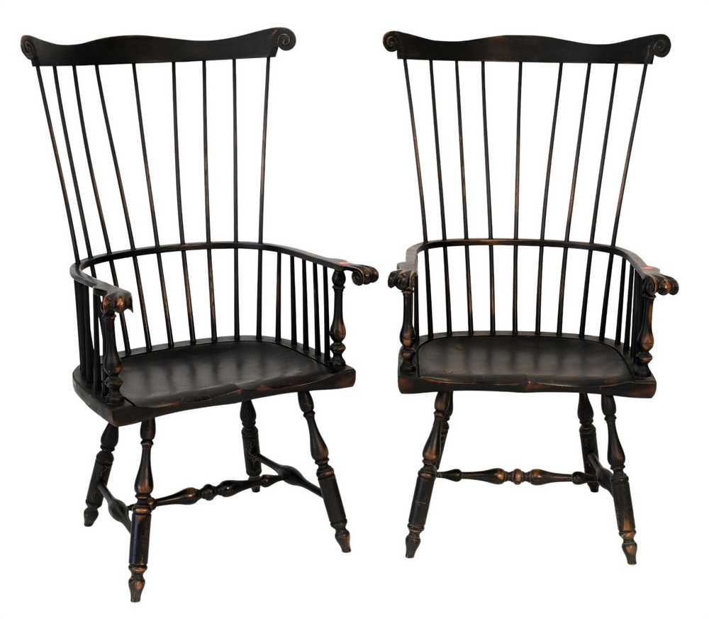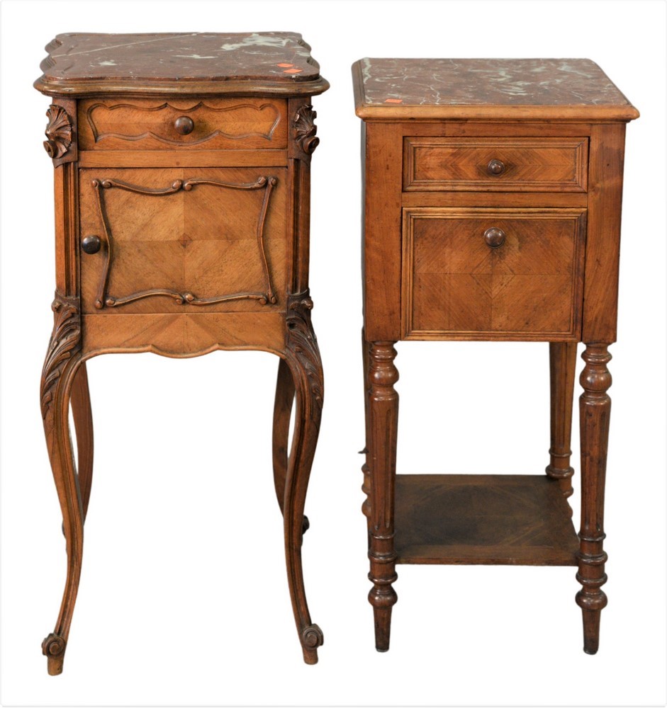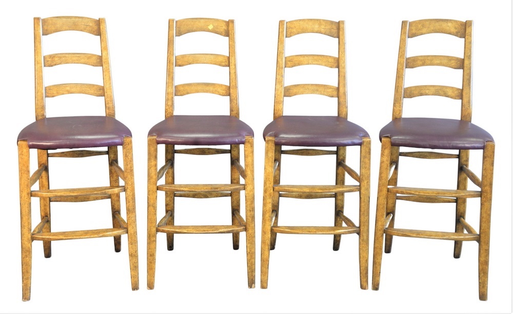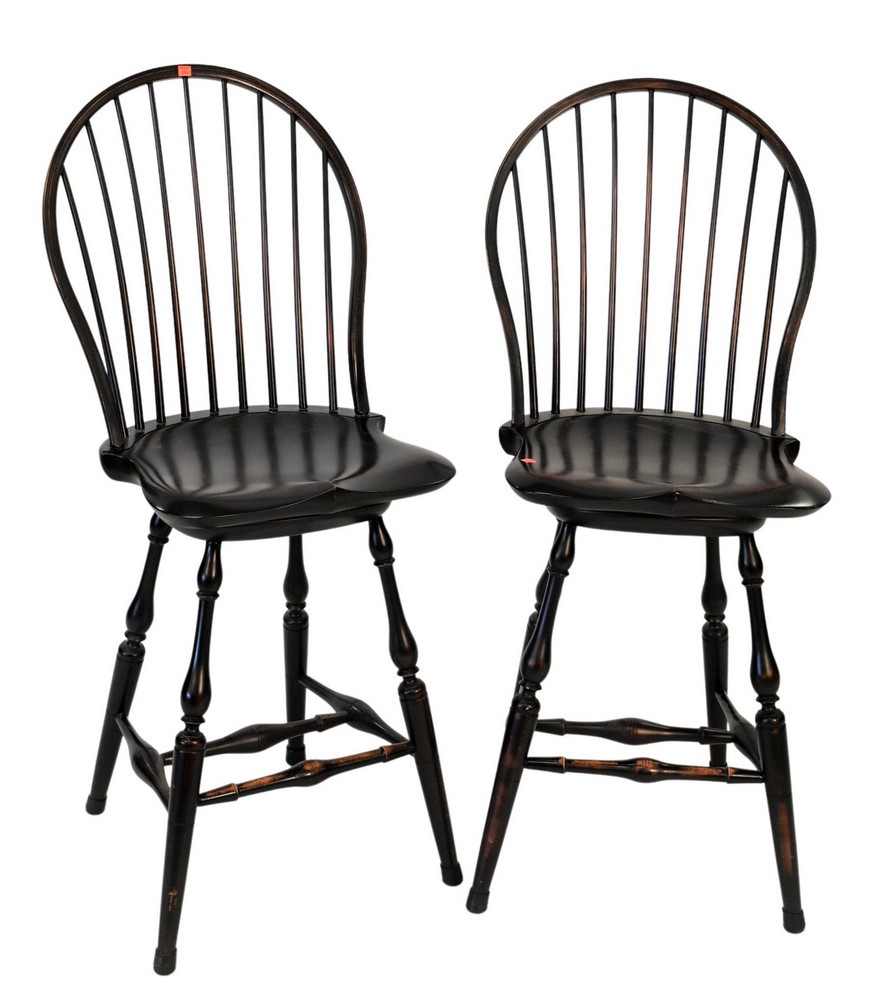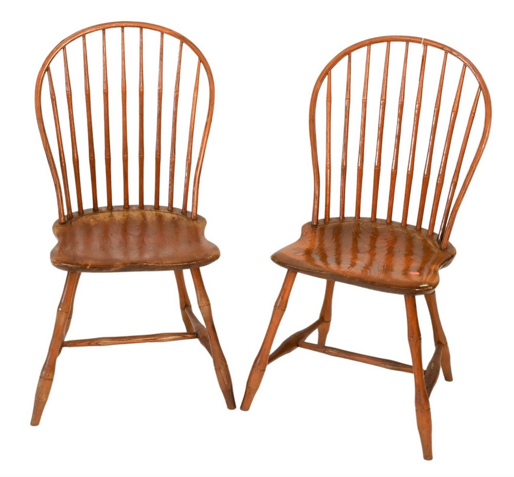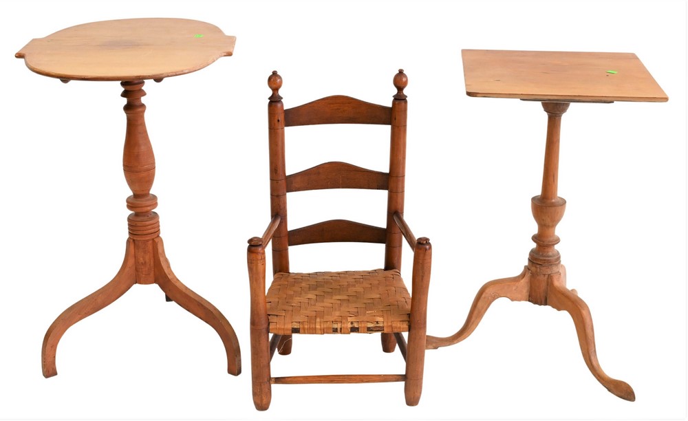 Three Piece Lot, to include two Federal candle stands, one with shaped top; along with a child’s ladder back chair, 26 inches, Provenance: Fifty Year Personal Collection of Clocks and American Antiques from Thomas Bailey, Manchester, Connecticut.