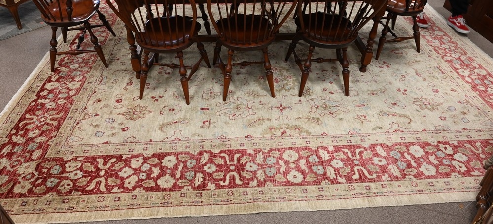 D.R. Dimes Custom Cherry Dining Table, with extensions set on turned legs, H stretcher, like new condition, height 30 inches, top 40 x 90 inches, top open 40 x 118 inches.