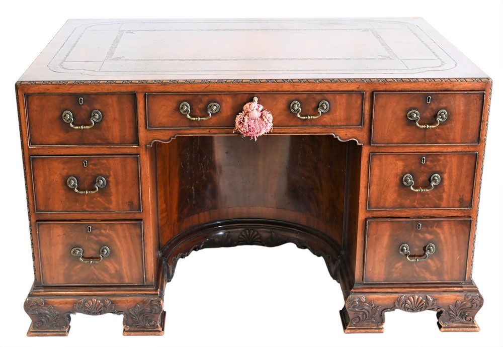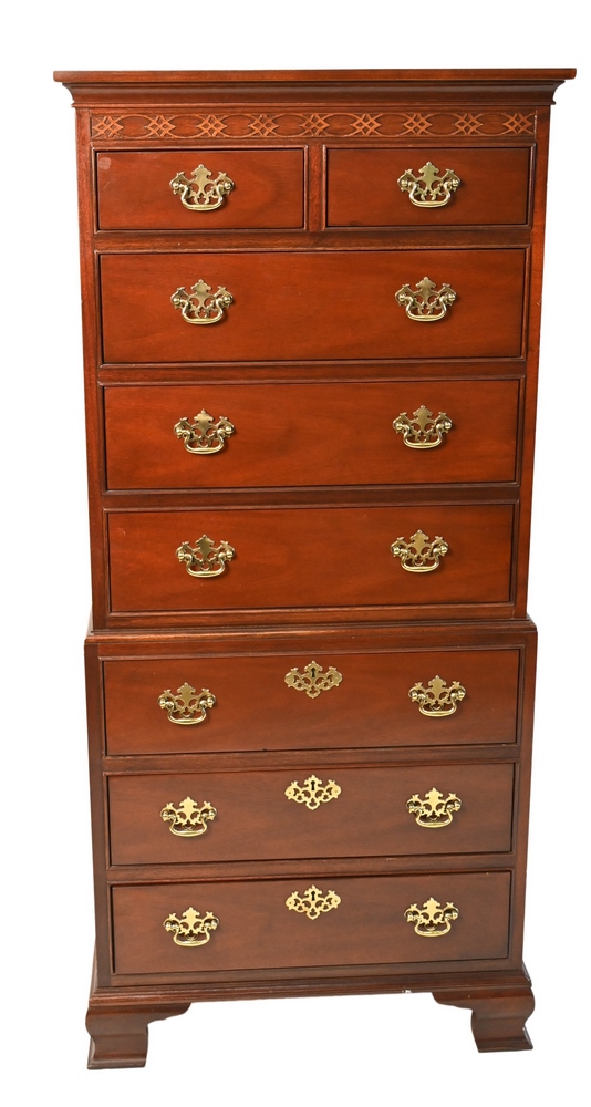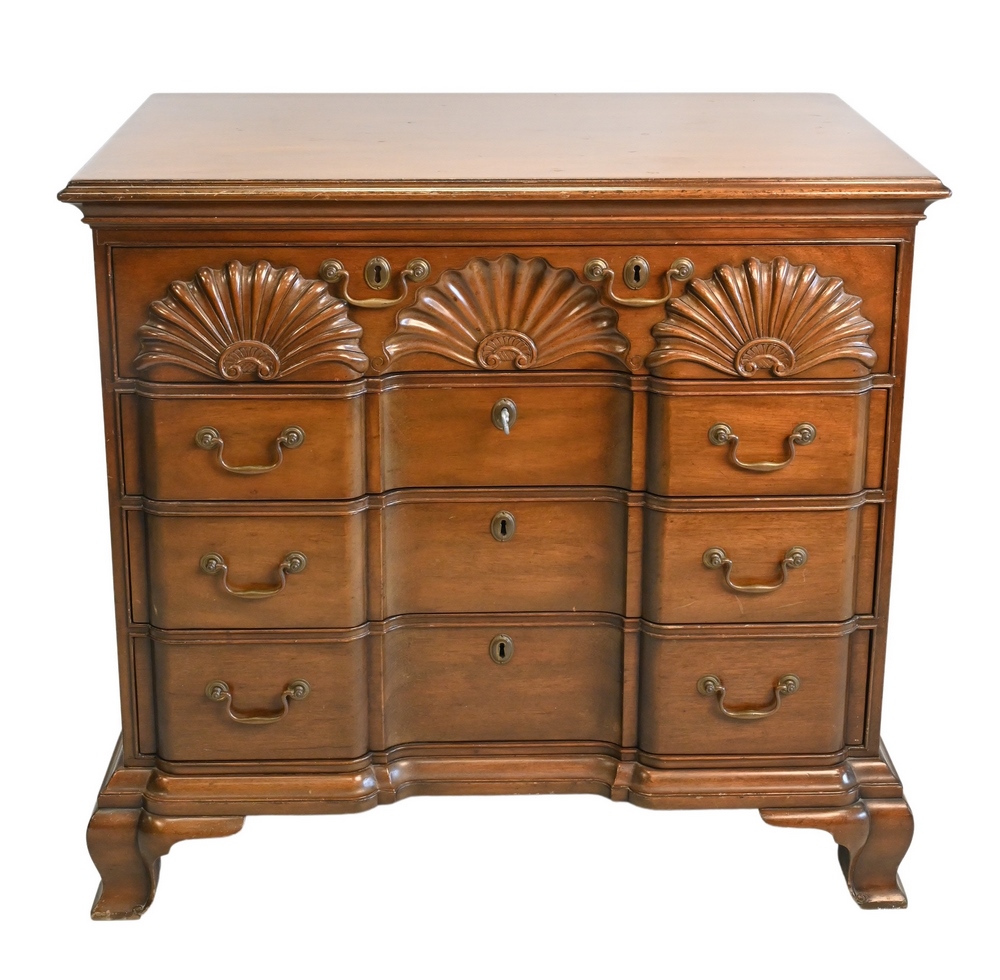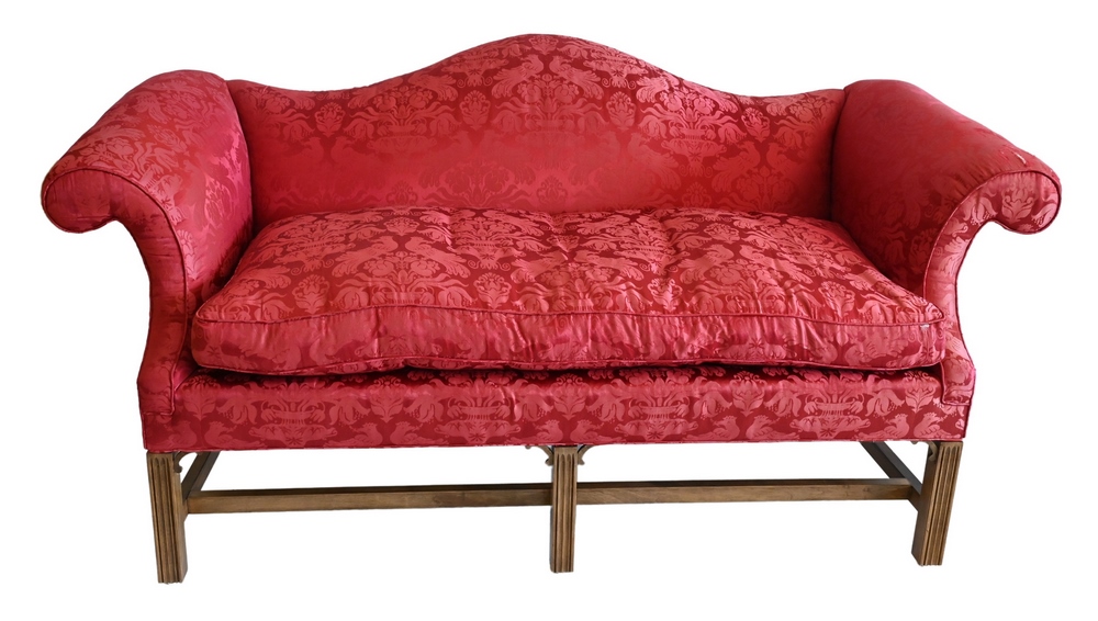 Chippendale Style Sofa, on fluted square legs, height 37 inches, width 72 inches, upholstery worn on left arm, Provenance: From the Robert Circiello Collection, West Hartford, Connecticut.