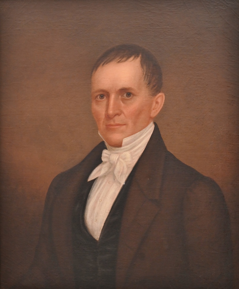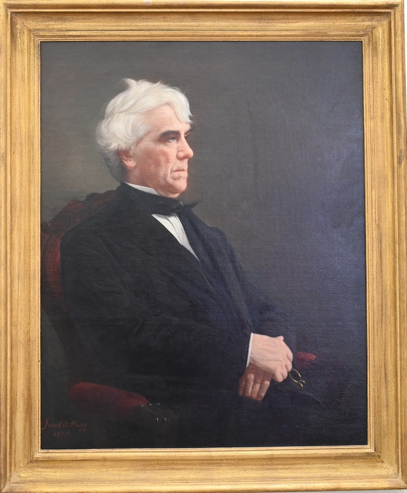 Jared Bradley Flagg (1820 – 1899), portrait of Calvin Day, one of the founders of the Wadsworth Atheneum and a school for the deaf in Hartford, CT, oil on canvas, signed lower left Jared B. Flagg, 1875, 36 x 30 inches, Lance Mayer and Gay Myers Conservation label on back.