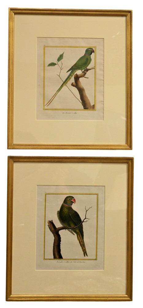François-Nicolas Martinet (1731 – 1800), set of five hand colored bird engravings, Petit Kakatoes; Perruche a collier; La perruche a collier; perruche a tete bleue; along with toucan; plate size 9 3/4 x 8 1/4 inches.