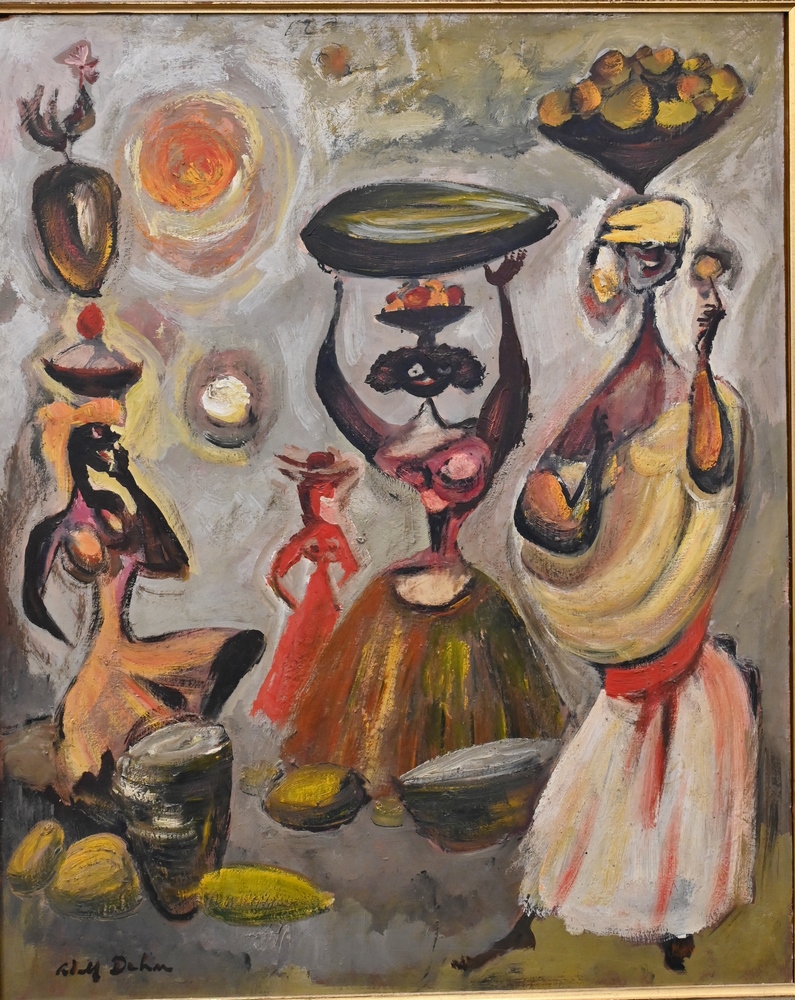 Two Framed Oil Paintings, to include a still life of flowers in a vase, signed Hopkins, 8 x 10 inches; along with a portrait of a man standing, wearing a red vest, 19 x 10 inches; 19th/20th century.