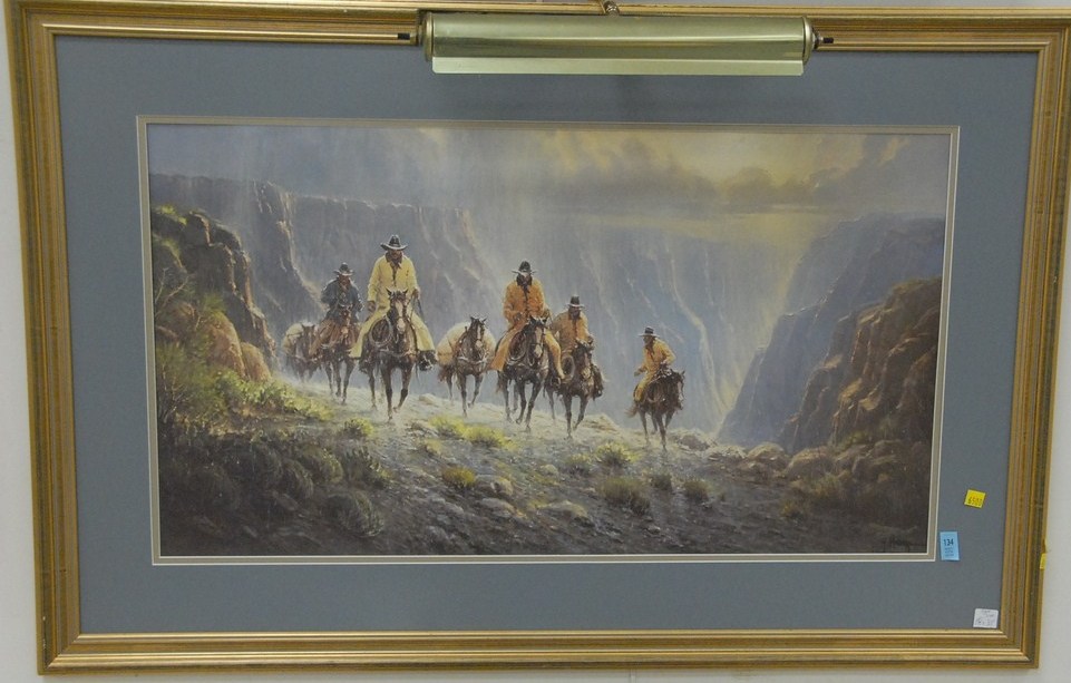 Gerald Harvey Jones Men of the American West print signed lower right G. Harvey and numbered lower left 981/1250 having certificate on reverse, 18 x 33.